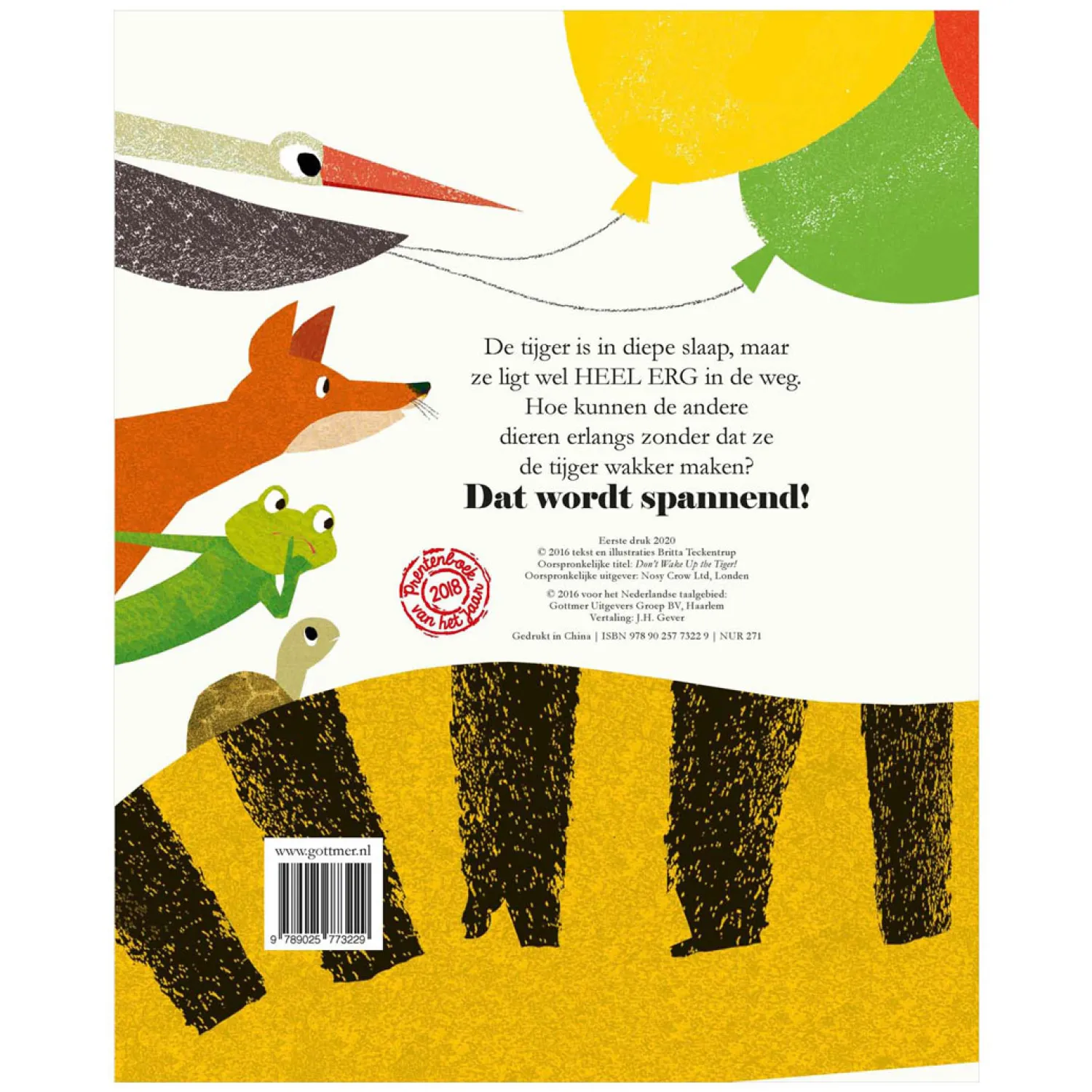Inmiddels is ‘Ssst! De tijger slaapt’ een ware klassieker te noemen. Het werd in 2018 verkozen tot Prentenboek van het Jaar, en dankzij deze stevige kartonversie kunnen ook de allerjongsten nu genieten van dit verrassende en interactieve prentenboek. De illustrator, de Duitse Britta Teckentrup, maakte al ruim 120 boeken die in meer dan 30 talen zijn uitgegeven.