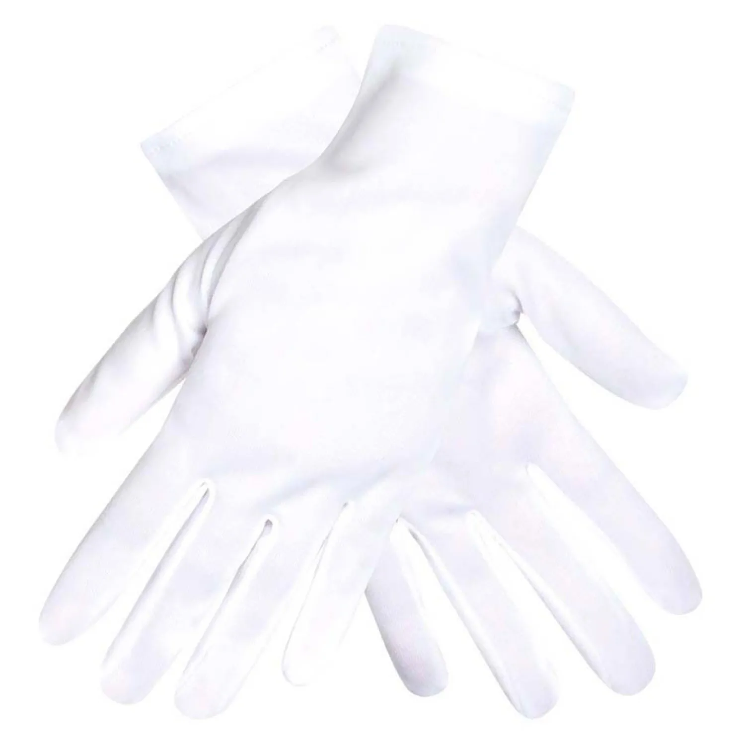 Deze eenvoudige witte polshandschoenen zijn een veelzijdige toevoeging aan diverse kostuums, zoals die van een butler, clown, goochelaar of Sinterklaas. Gemaakt van 100% polyester, bieden ze een comfortabele pasvorm voor de meeste handmaten. Met een lengte van 24 cm bedekken ze de pols volledig, waardoor ze zowel functioneel als stijlvol zijn. Geschikt voor volwassenen vanaf ca. 14 jaar oud.