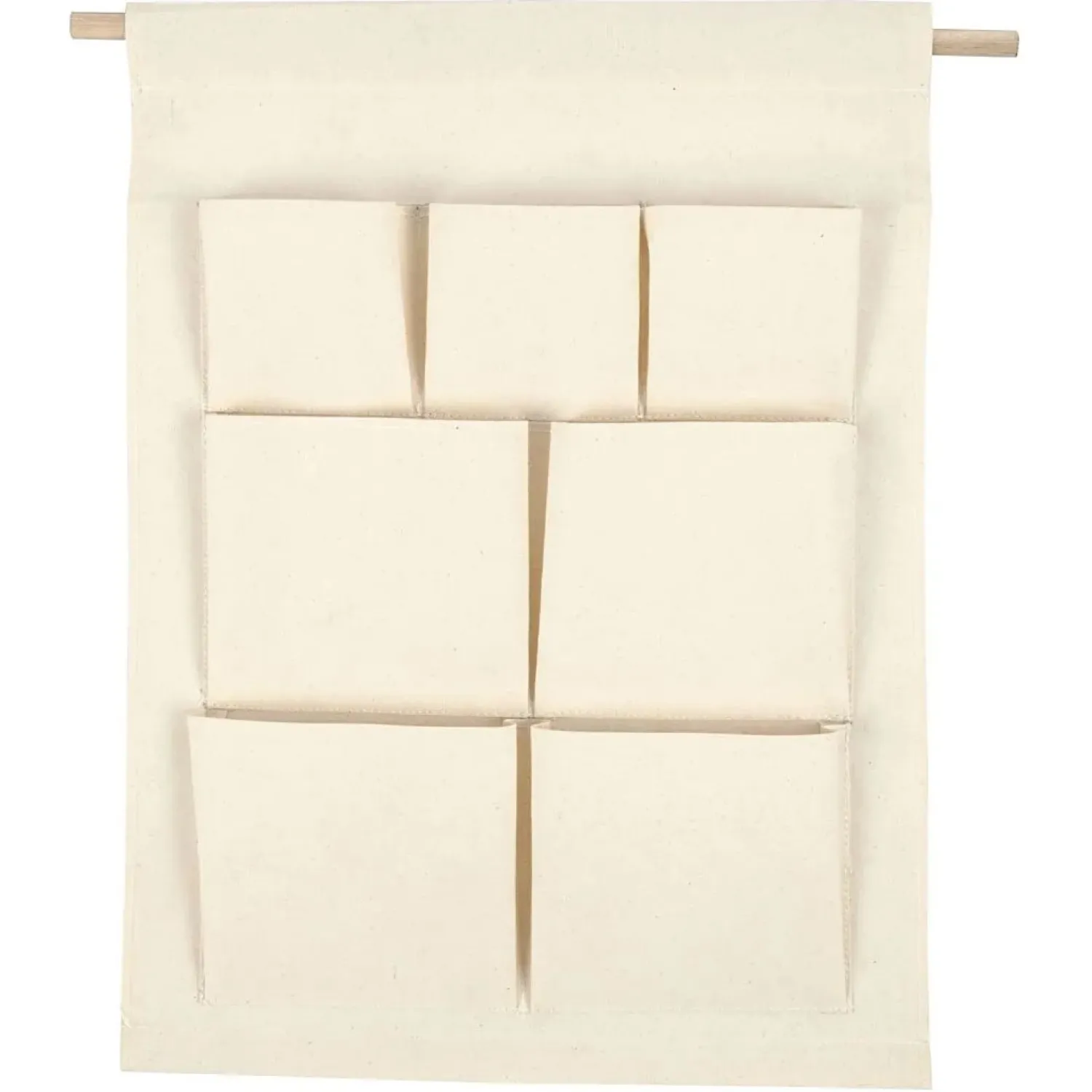De achterzijde is van plastic en bovenin kun je een houten stok door de organiser steken om het op te hangen. De voorzijde kun je decoreren naar je eigen smaak, met stift, verf, vilt, enzovoort. Maak je eigen creatieve organiser van.