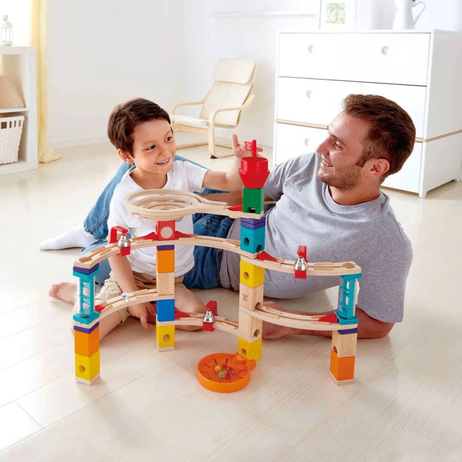 • Knikkerbaan bouwspeelgoed gemaakt van duurzaam hout en niet-giftige verf op waterbasis