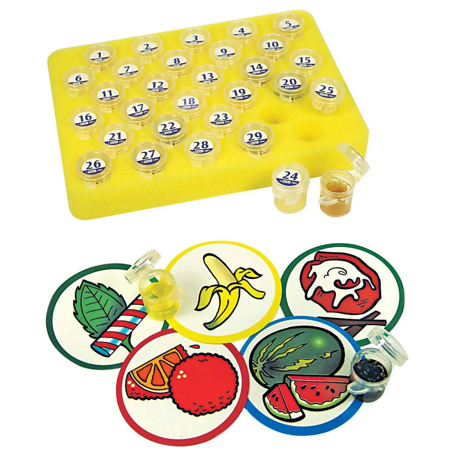 De zelfsluitende cups zijn perfect om in te bewaren en de geuren gaan jarenlang mee! Zes verschillende spellen voor verschillende ontwikkelingsniveaus. Bevat een uitgebreide gids. 30 geuren; 30 beeldschijven.