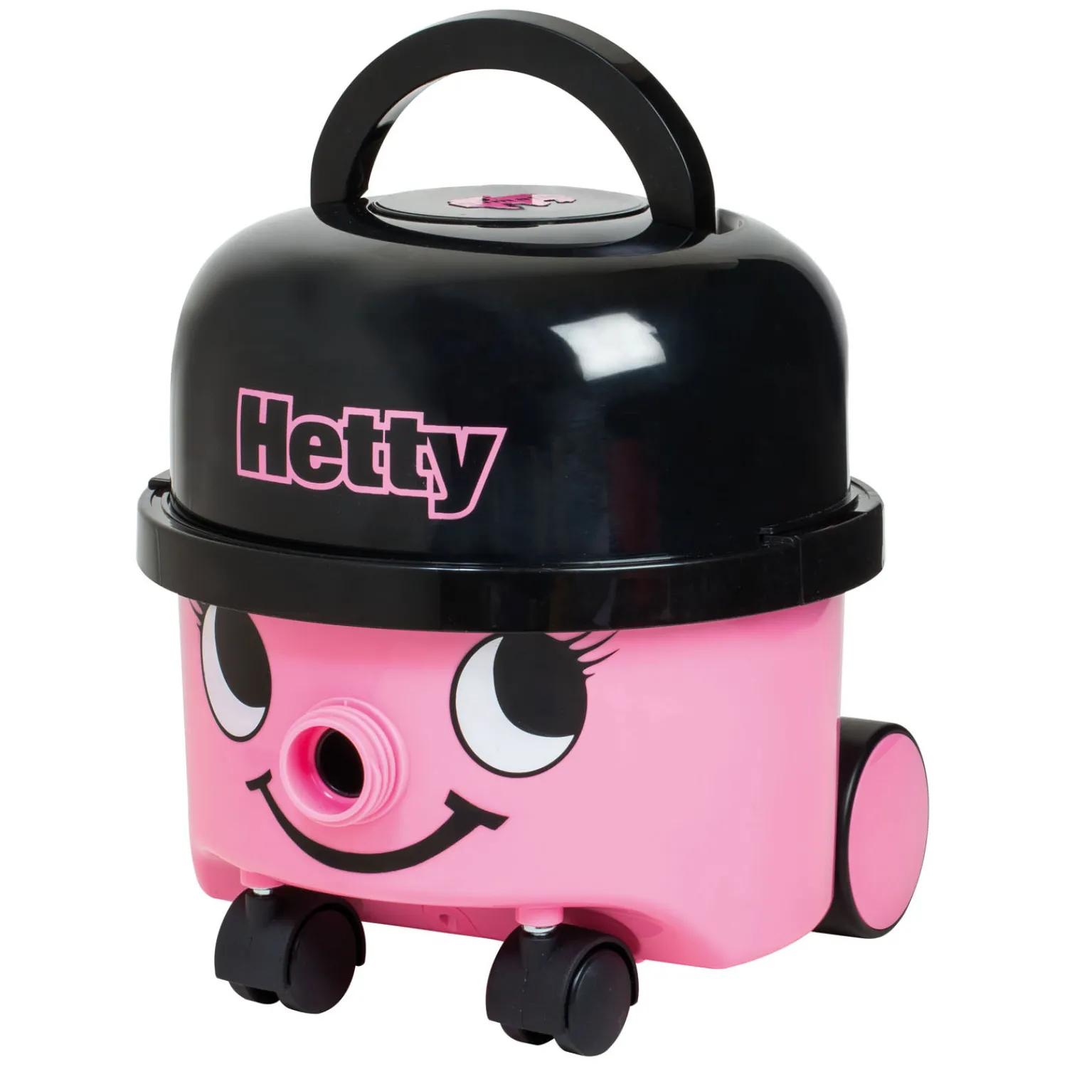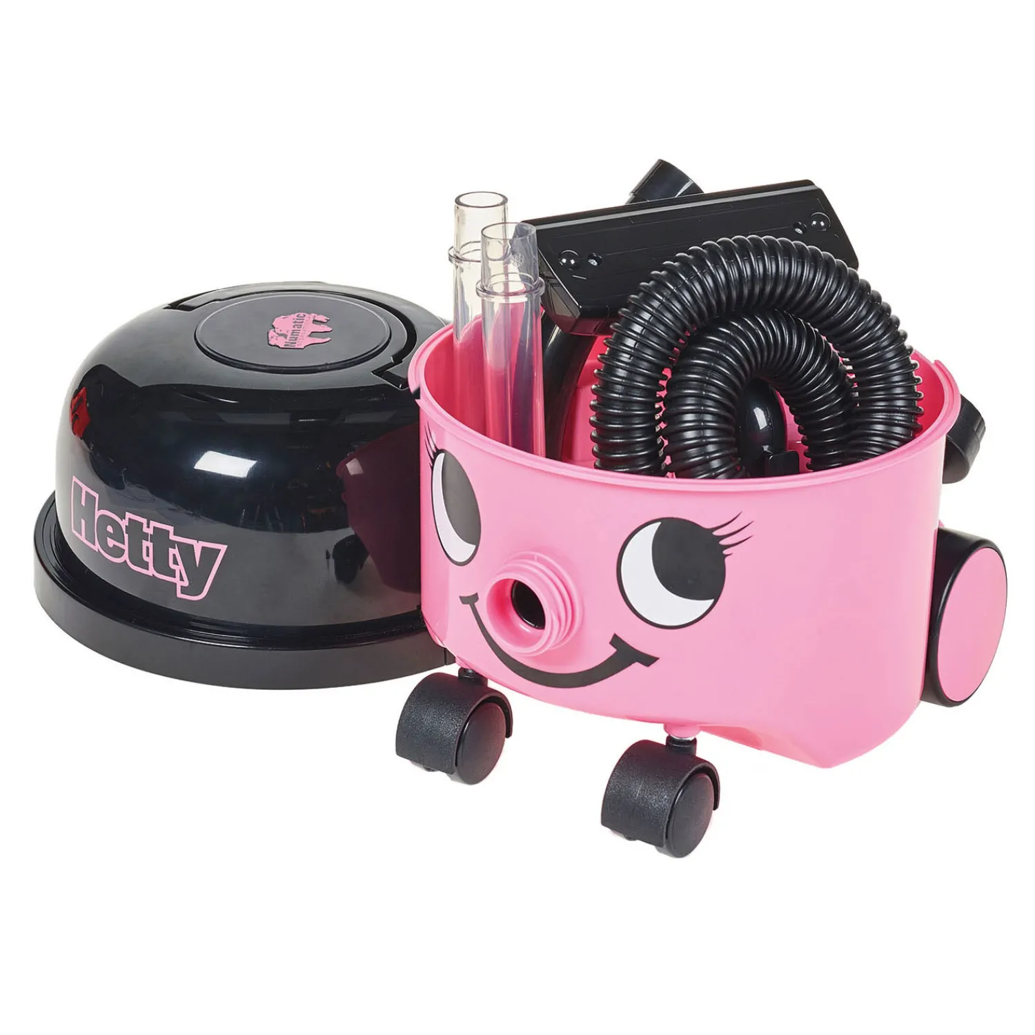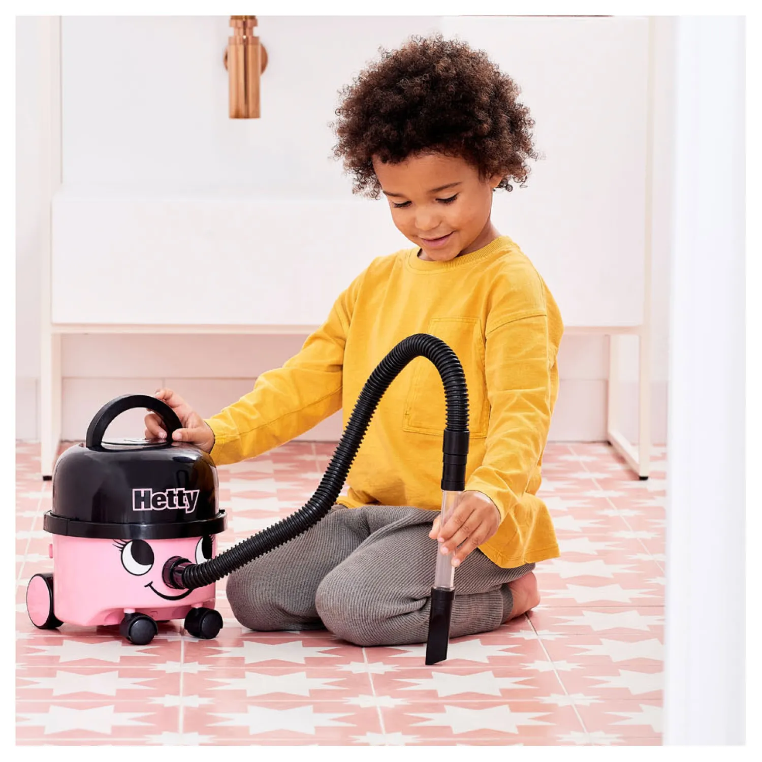 Inclusief: speelgoedstofzuiger van het merk Hetty met werkende zuigkracht, verwijderbare vuillade en mondstukaccessoires.
