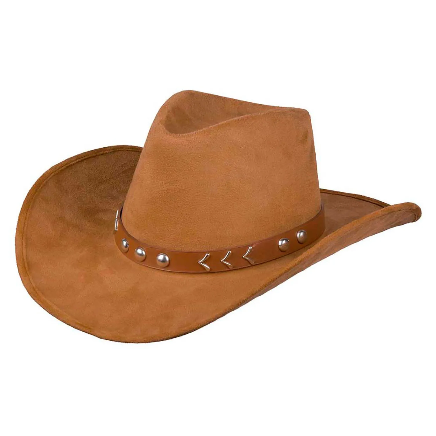 Mooie (verkleed)hoed in cowboymodel met suedelook. Geschikt als feestaccessoire maar ook voor een stoere zomerse look! De hoed is bruin en heeft een zachte structuur. Geschikt voor volwassenen met hoofdomtrek van ca. 59 centimeter. Gemaakt van polyester.