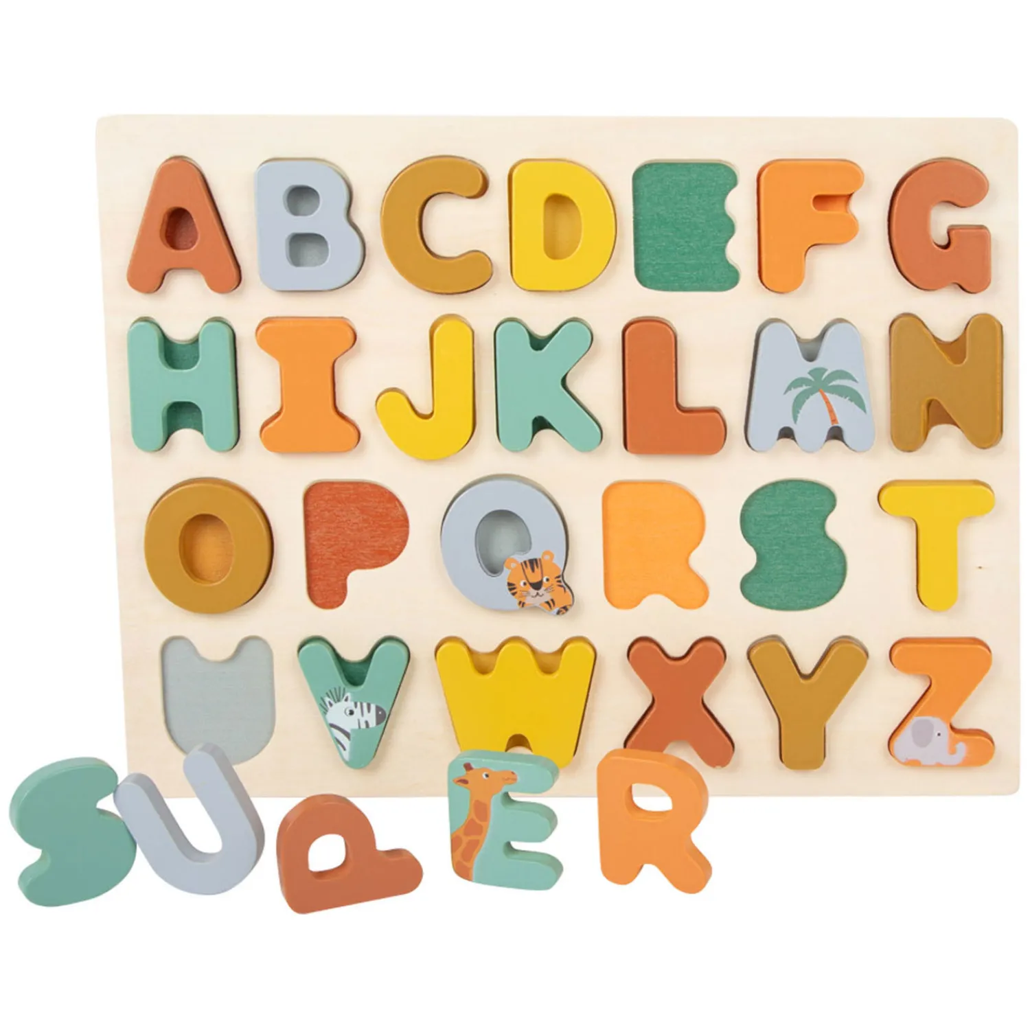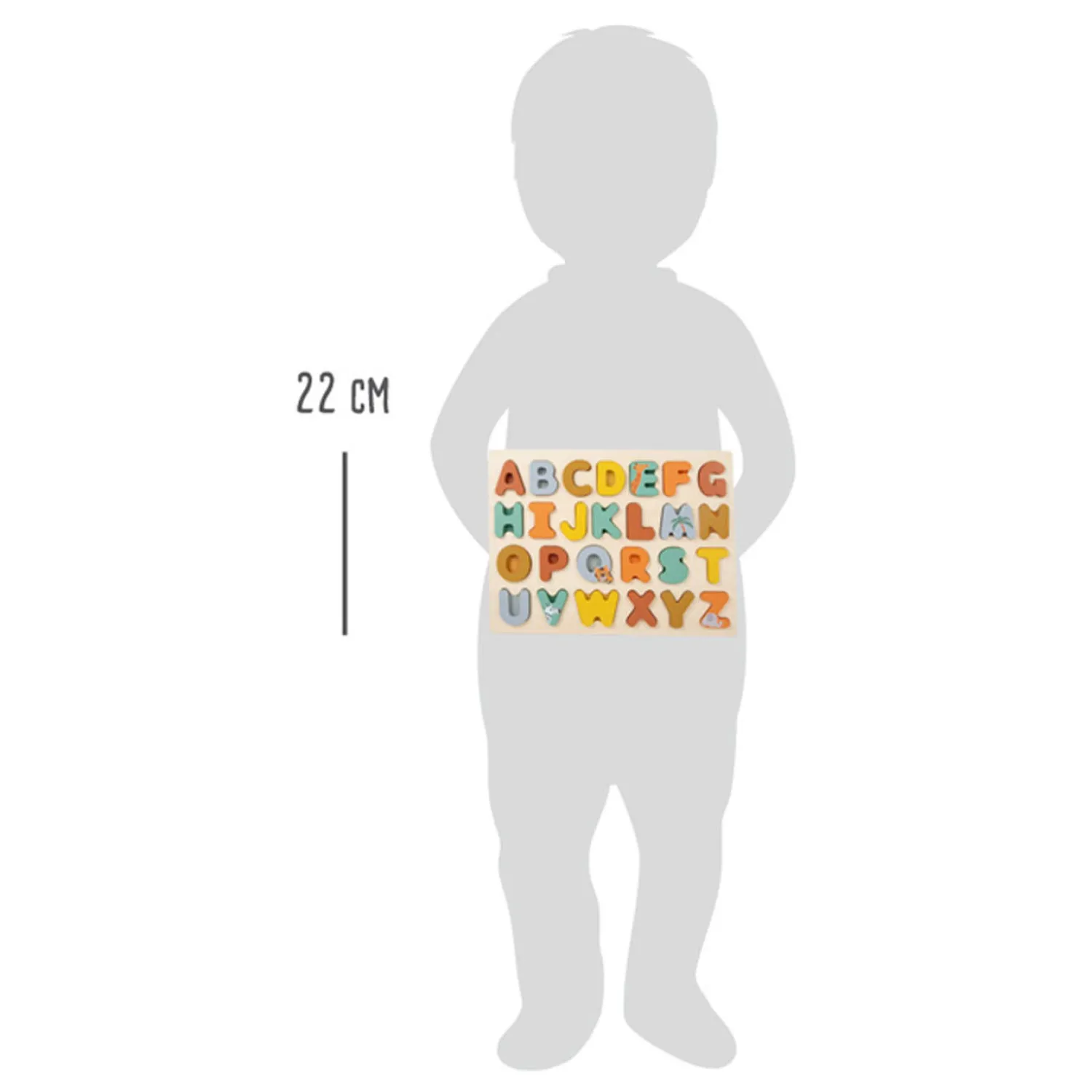 Leer het herkennen van letters met deze houten alfabet safari puzzel. Leg de juiste letter op de juiste plaats. De 26 puzzelstukjes zijn gemaakt van hout en hebben vrolijke kleuren. De puzzelstukken zijn extra dik. Geschikt voor kinderen vanaf 24 maanden.
