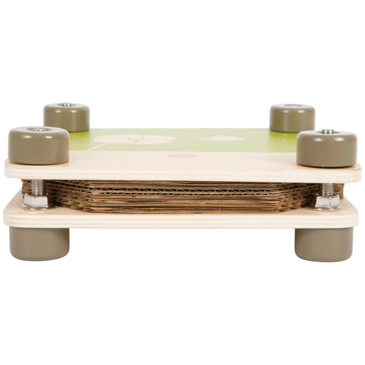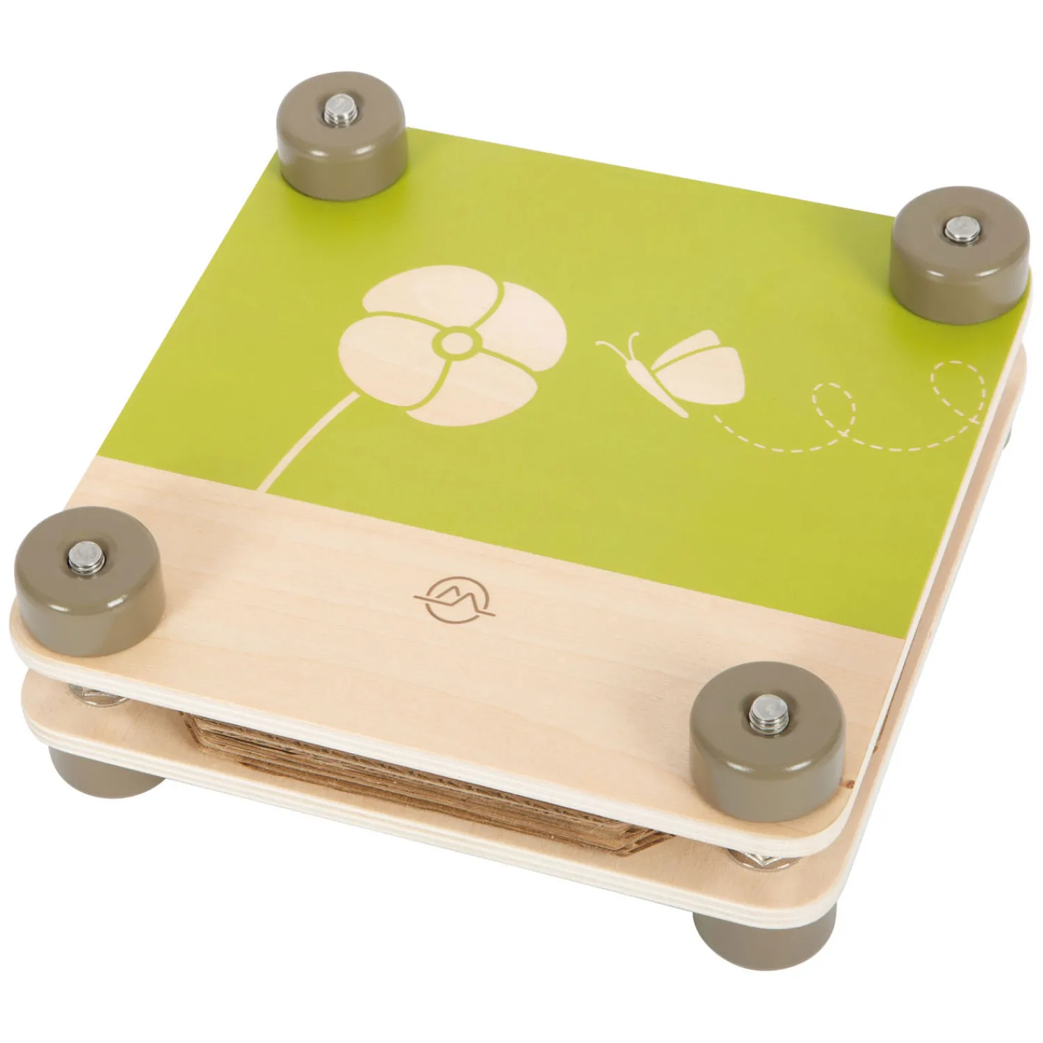 Bloemen zijn een fascinerend onderdeel van de natuur, en kinderen houden ervan om hun eigen kleine verzameling bloemblaadjes, bloemen en bladeren te hebben. Met de bloemenpers voor kinderen uit de “Discover” productlijn kunnen zelfs jonge kinderen hun favoriete bloemen en bladeren bewaren en hun creativiteit vrij laten stromen. Het gebruik van de bloemenpers is heel eenvoudig. De kartonnen stukken en twee vellen papier worden op elkaar gelegd, en bloemen en bladeren kunnen tussen de stukken worden geplaatst en geperst. Het bijgeleverde papier beschermt niet alleen de geperste objecten, maar absorbeert ook overtollig vocht. Hiermee kunnen kinderen lang genieten van hun verzamelde bloemen en hebben ze altijd genoeg materiaal om te knutselen of te versieren! Deze bloemenpers is niet alleen een praktisch knutselgereedschap, maar ook een echte blikvanger voor de knutseltafel. Let op: het wordt aanbevolen om elke bloem of blad ongeveer 5-10 dagen te drogen, afhankelijk van het type bloem of blad.