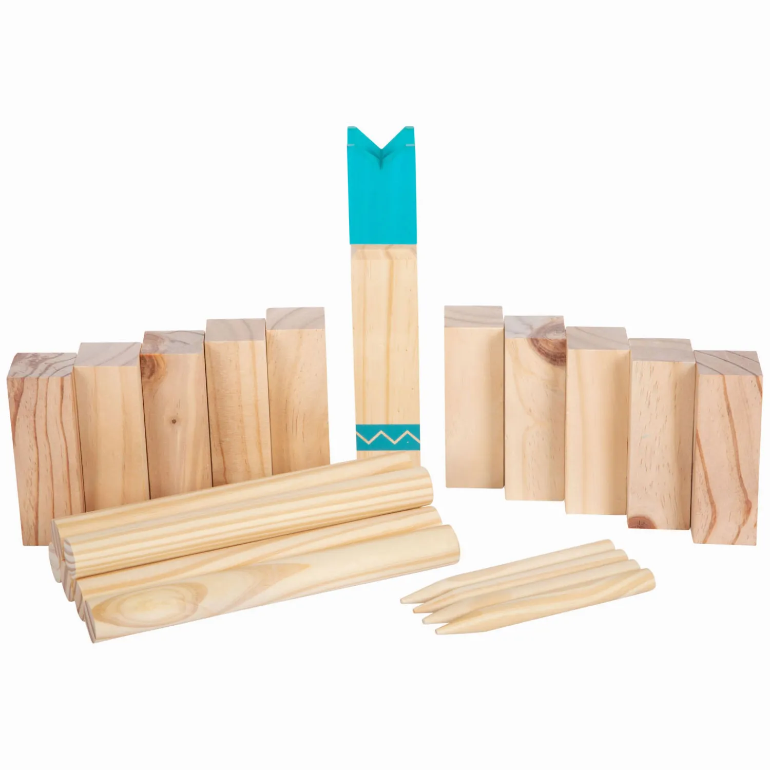 Dit werpspel speel je het beste op een grote, vlakke ondergrond – met de grenspalen kun je het speelveld zo groot maken als je zelf wilt en de moeilijkheidsgraad van dit buitenspel variëren.