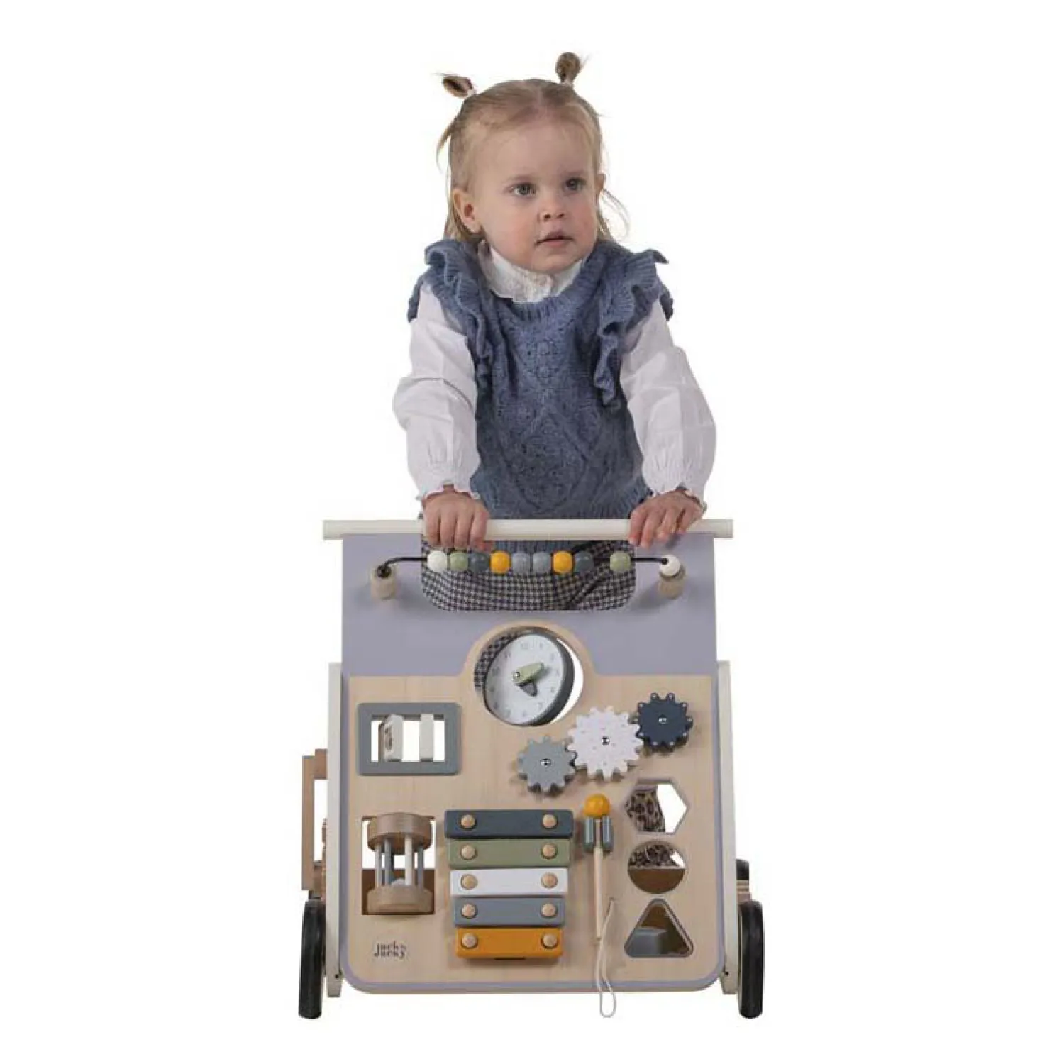 Deze prachtige houten loopwagen is ontworpen voor kindjes vanaf 12 maanden en biedt een scala aan leuke activiteiten waar je kleintje heerlijk mee kan spelen. Met deze loopwagen wordt leren lopen een avontuurlijke en plezierige ervaring!