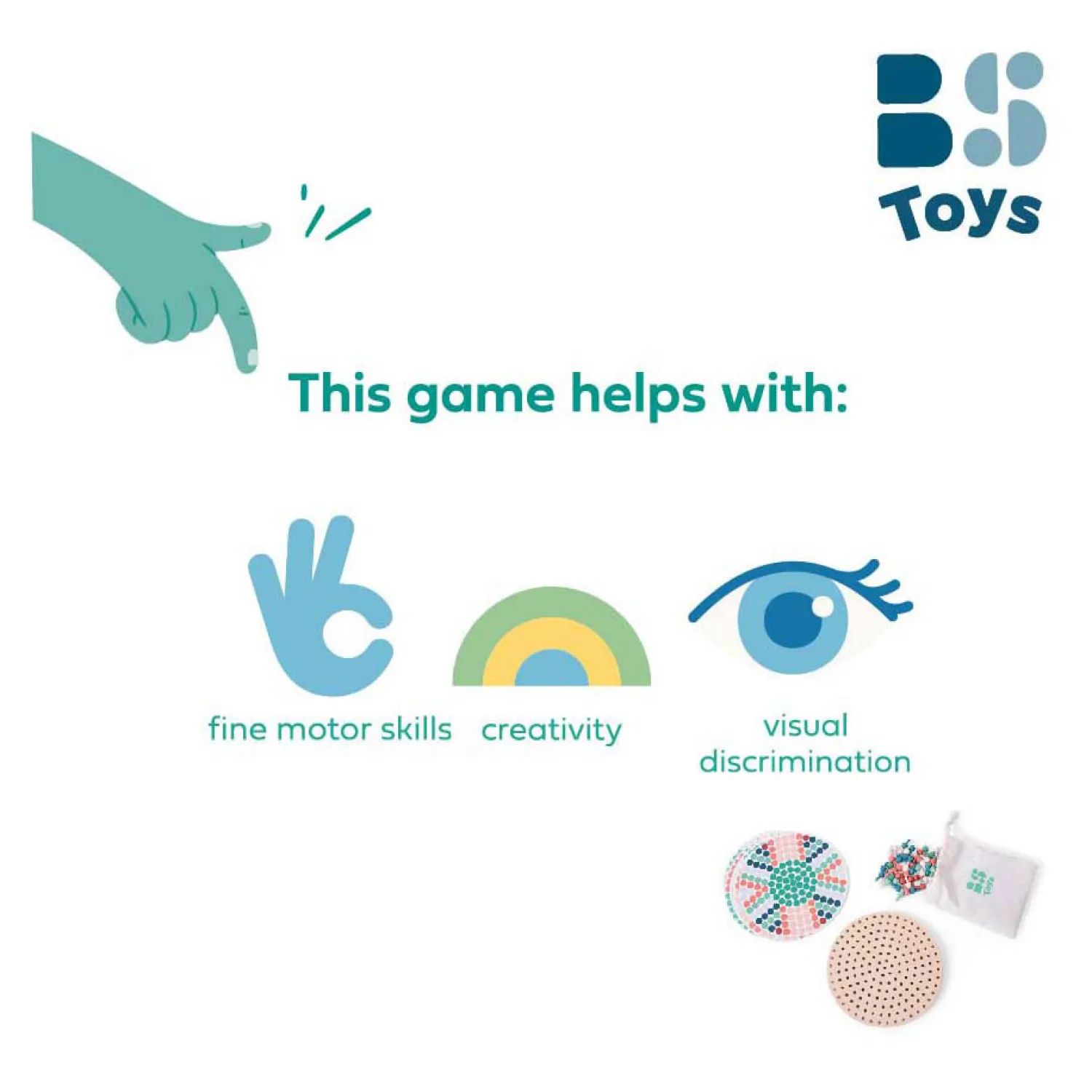 Het mozaïekbord bevordert de fijne motoriek, creativiteit en visuele discriminatie. Perfect voor kinderen vanaf 4 jaar!