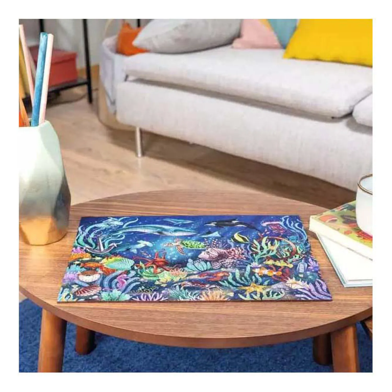 Deze kwaliteitspuzzel is met de hand ontworpen en lasergesneden en heeft een kleurrijke illustratie die rechtstreeks op het hout is gedrukt voor een levendige puzzelervaring. Geïnspireerd op de afbeelding, zijn er verschillende heerlijke eigenzinnige puzzelstukjes in verwerkt! Gemaakt van milieuvriendelijk hout en verpakt in een biologisch afbreekbare papieren zak, is deze stevige puzzel een doordacht, duurzaam cadeau.