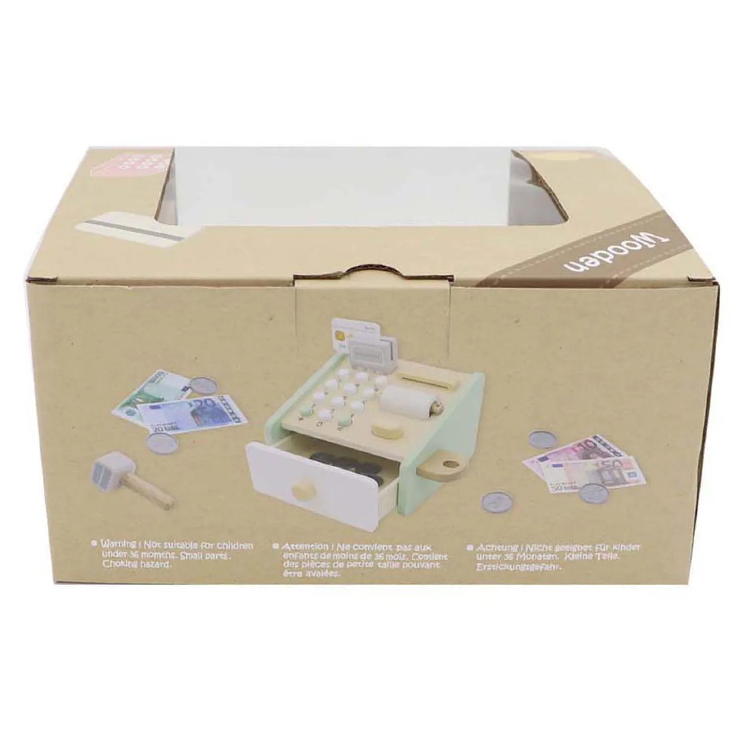 Bij de speelgoedkassa zit een set speelgoedgeld (euro’s) inbegrepen, een echte bonnenrol en een pinpas. Geschikt voor kinderen van 3 jaar en ouder.