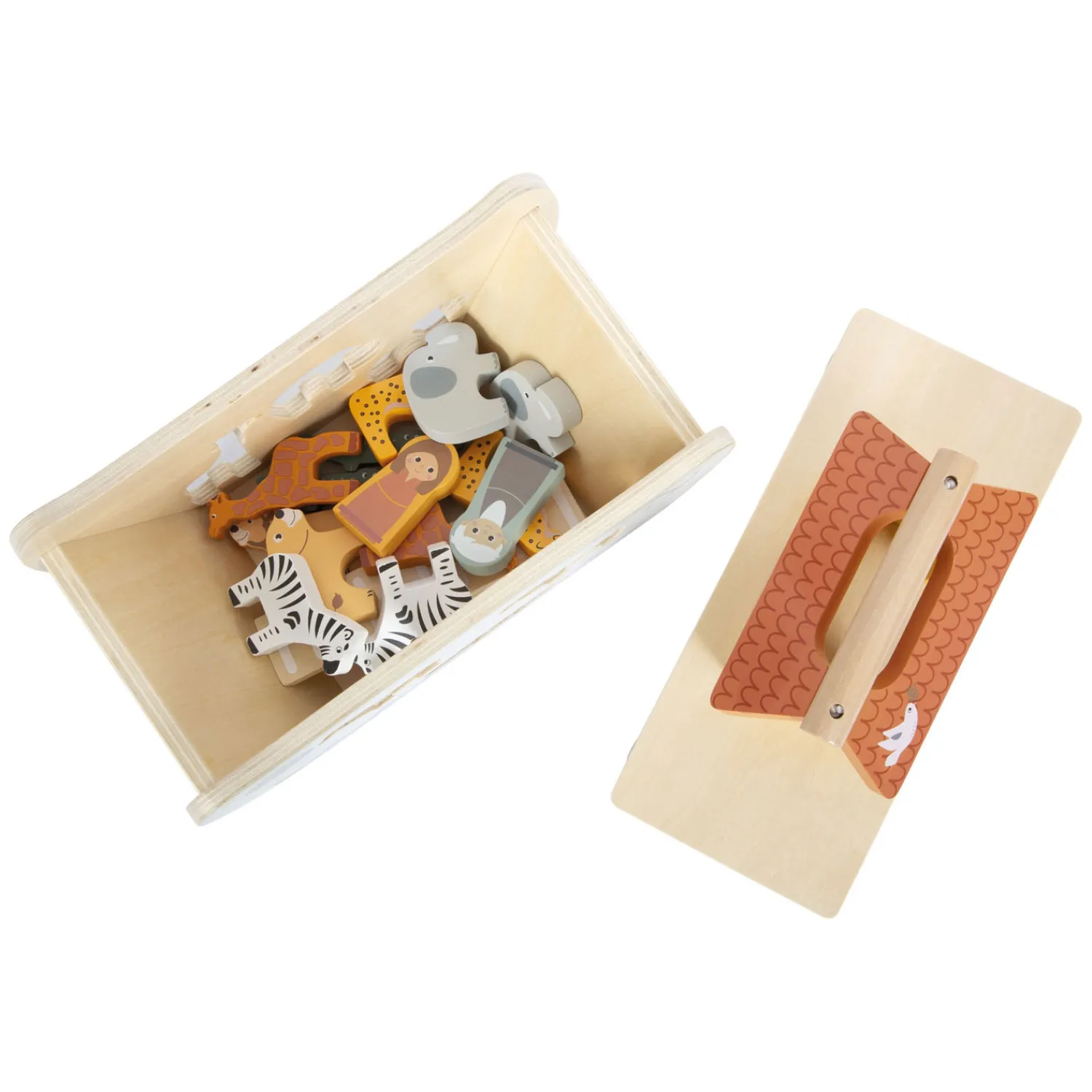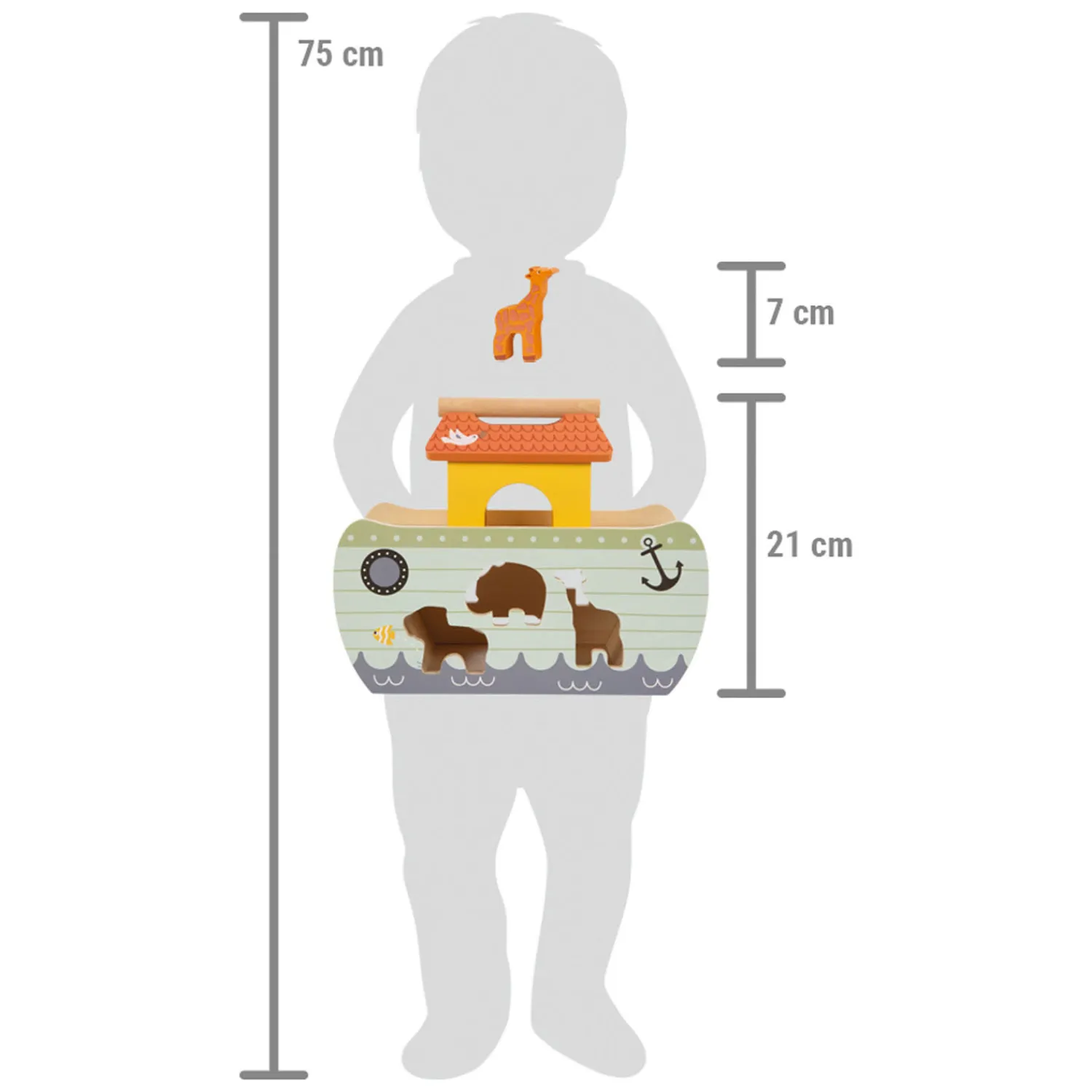De liefdevolle, rijk gedetailleerde vormgeving, de hoogwaardige illustraties en de moderne kleurstelling vormen samen met het hoge aandeel zichtbare houtmaterialen een echte blikvanger in de kinderkamer. Deze nauwsluitende boot bevordert de ontwikkeling van de motoriek en vormherkenning, terwijl het de fantasie van kinderen stimuleert en hen aanmoedigt om keer op keer hun eigen verhalen en avonturen te creëren. Het vormspel Noah’s Ark past uitstekend bij ander speelgoed en spellen uit de “Safari”-lijn.