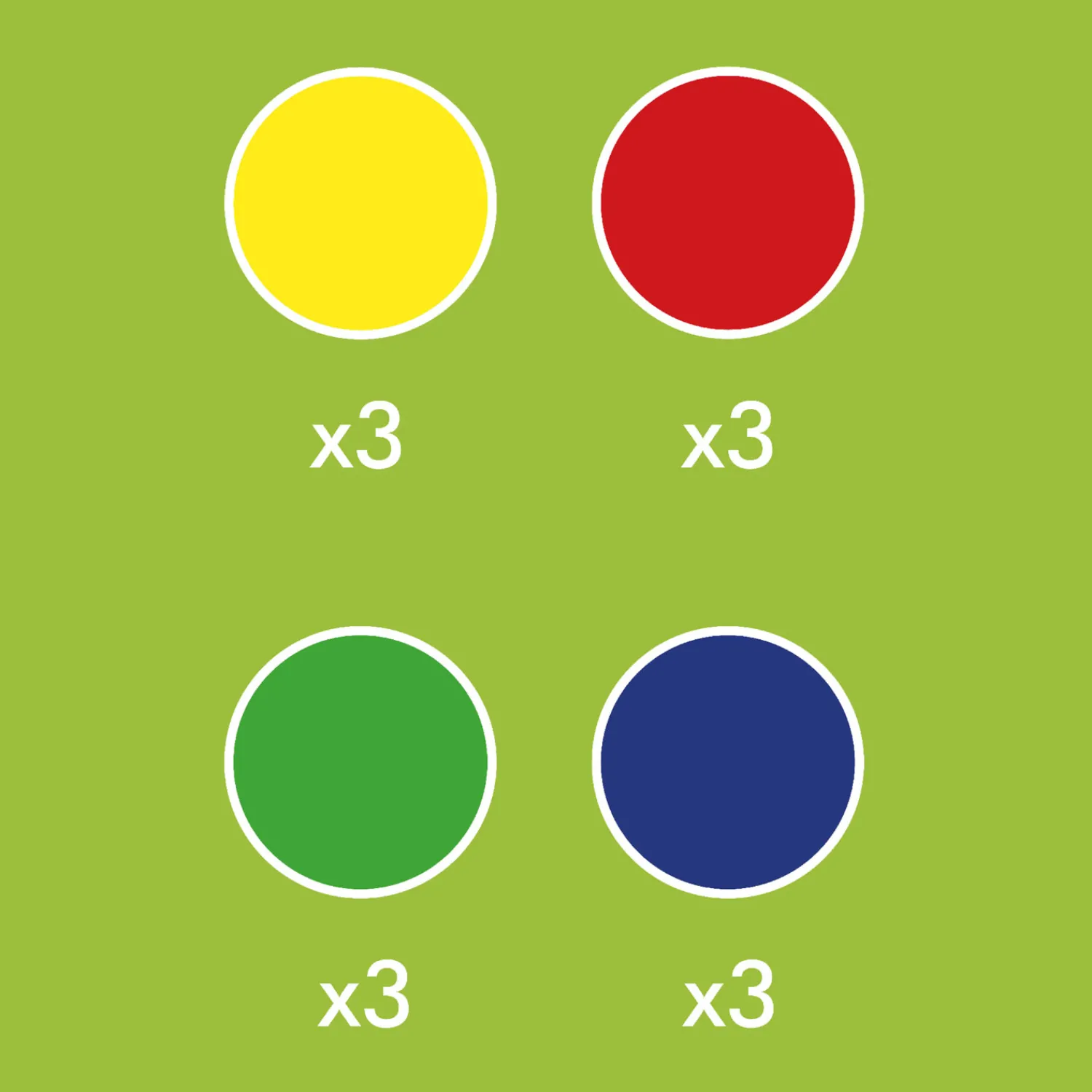 In deze verpakking zitten 12 knikkers in de kleuren: Blauw, groen, geel en rood.