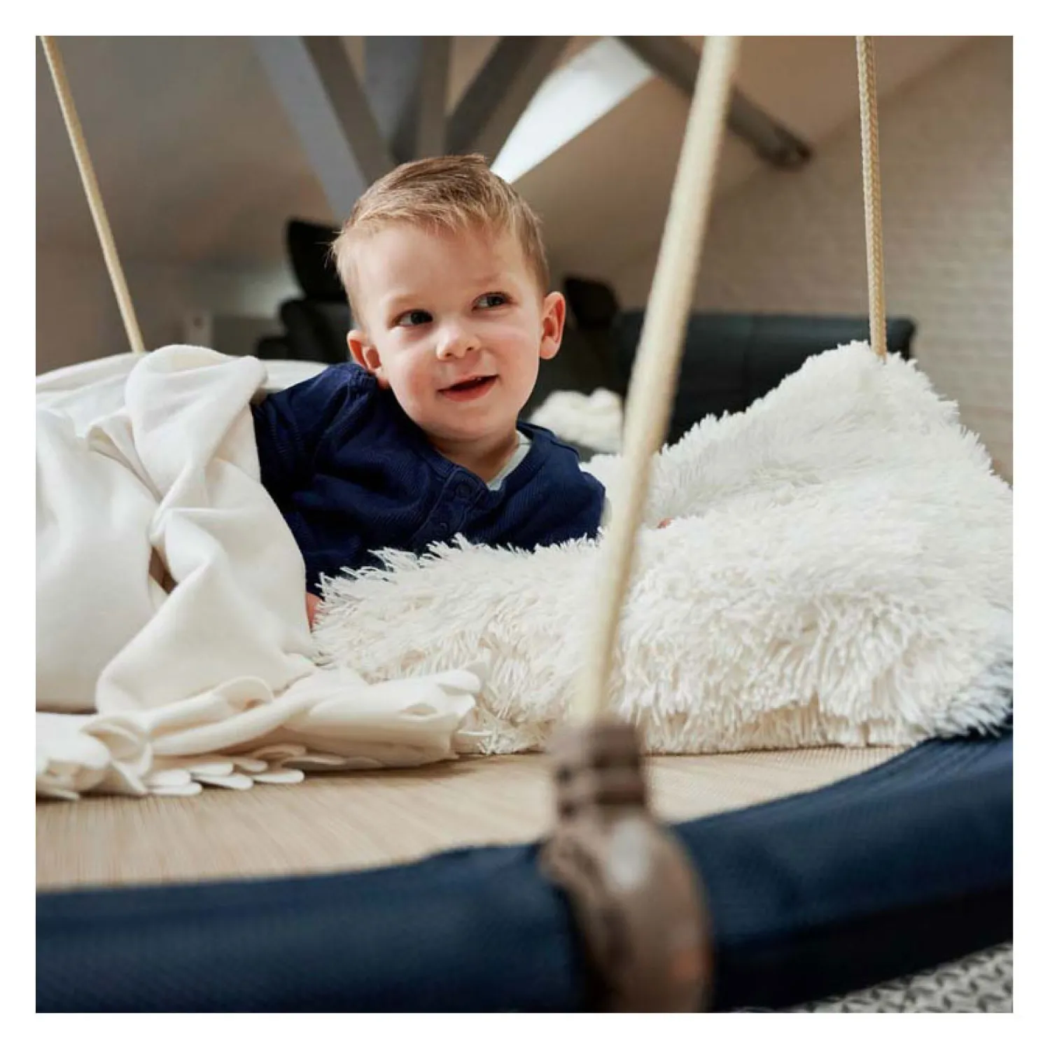 Hier kan je mee thuiskomen! De nieuwe ronde nestschommel met een diameter van 90 cm biedt niet alleen comfortabel schommelplezier, maar is ook echte blikvanger. Het gemêleerde nestoppervlak en de prachtige grijstint genaamd “Midnight” aan de rand passen in elk trendbewust tuinontwerp.
