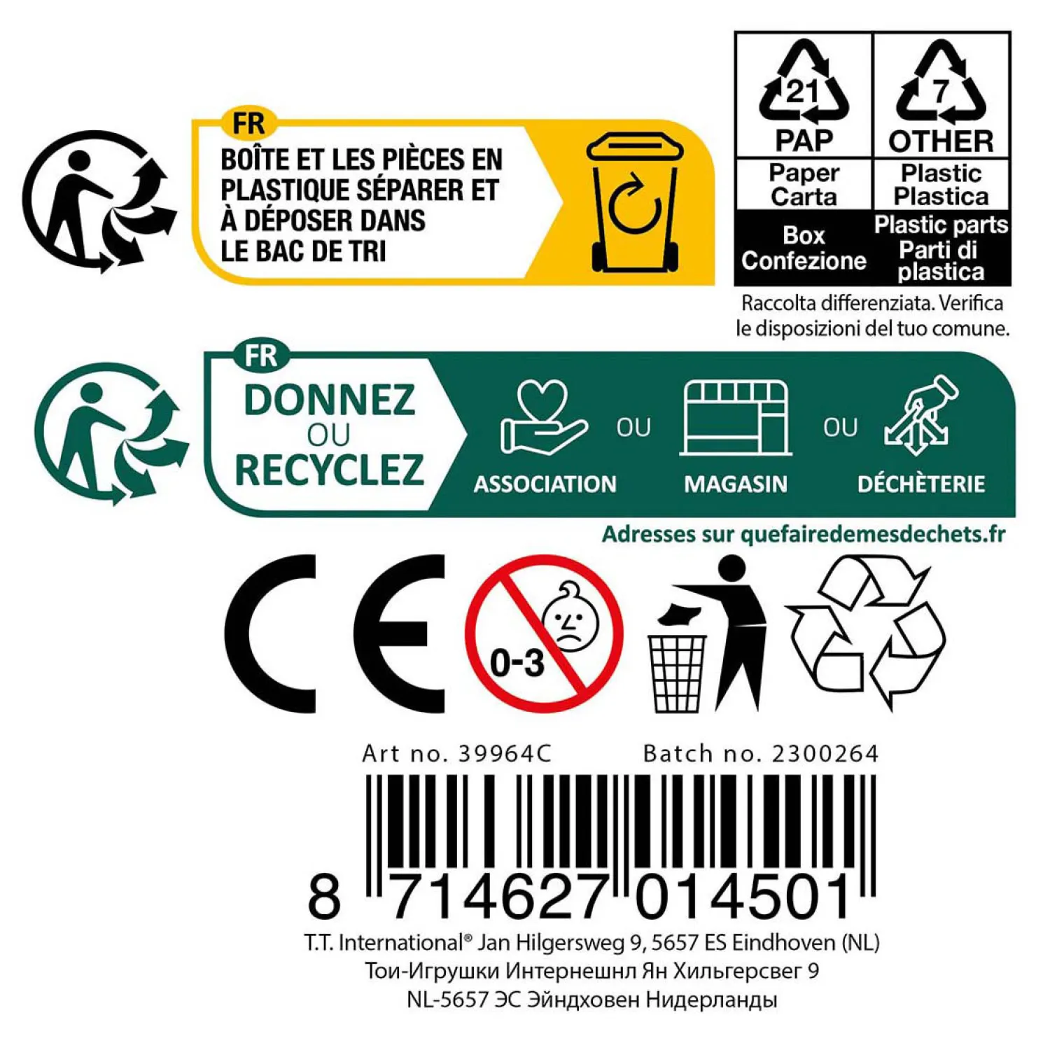 - Waarschuwing: Niet geschikt voor kinderen onder de 3 jaar ivm kleine onderdelen.