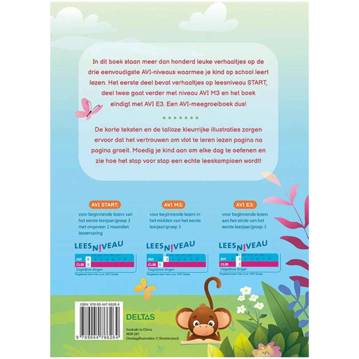 Het eerste deel van dit boek bevat verhaaltjes op leesniveau START, deel twee gaat verder met niveau AVI M3 en het boek eindigt met AVI E3. Een AVI-meegroeiboek dus!