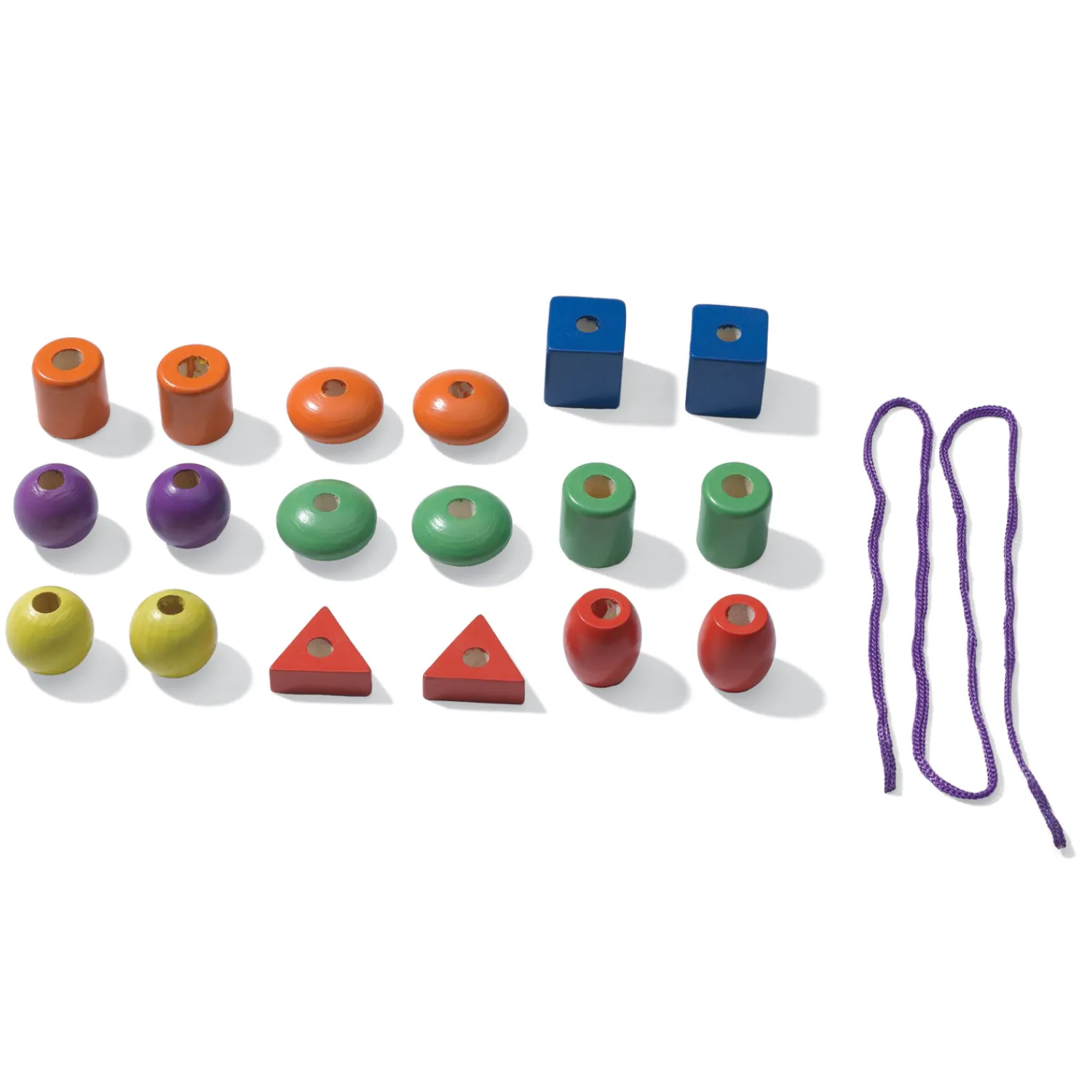 In de verpakking vind je 18 vrolijk gekleurde houten kralen in verschillende vormen, rijgkoord en een handleiding.