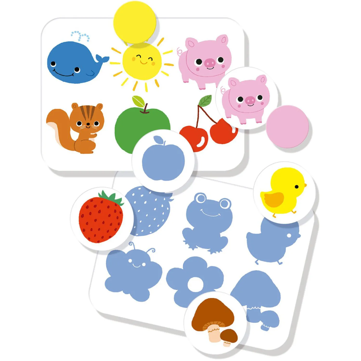 Met ‘ik leer vormen & kleuren’ leren kinderen spelenderwijs kleuren benoemen, vormen & silhouetten herkennen, de woordenschat vergroten en verbanden leggen. Kan jij een afbeeldingen met dezelfde vorm of kleur vinden? Maak zo de grote lottokaart compleet.