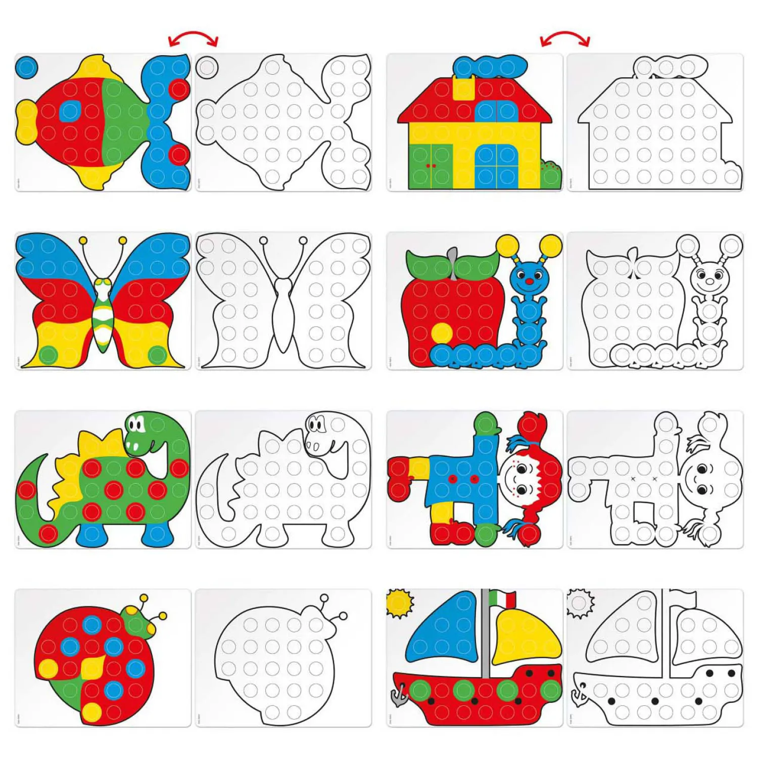 Met deze Quercetti FantaColor Junior set kunnen kinderen gemakkelijk hun eerste prachtige creaties samenstellen door het plaatsen van de 48 grote pinnen in het geperforeerde bord. Kinderen kunnen met dit spel voortborduren op de meegeleverde afbeeldingen of ze kunnen uiteraard hun eigen creaties maken. Uitstekend voor de hand-oogcoördinatie. Om opnieuw te beginnen draai het bord gewoon om en druk de pinnen er uit. De set wordt geleverd met 48 grote pinnen in 4 verschillende kleuren, een geperforeerd bord en 16 leuke afbeeldingen. Het bord wordt tevens geleverd met 2 kleine steuntjes zodat het mooi rechtop kan staan. Geschikt voor kinderen vanaf 2 jaar.