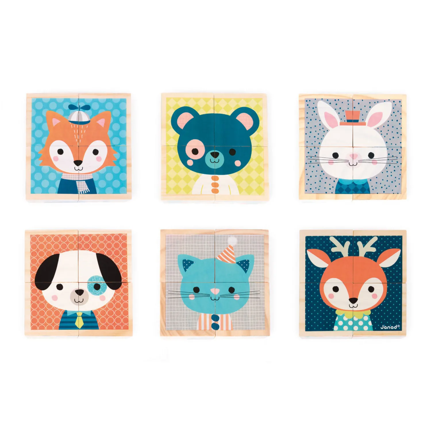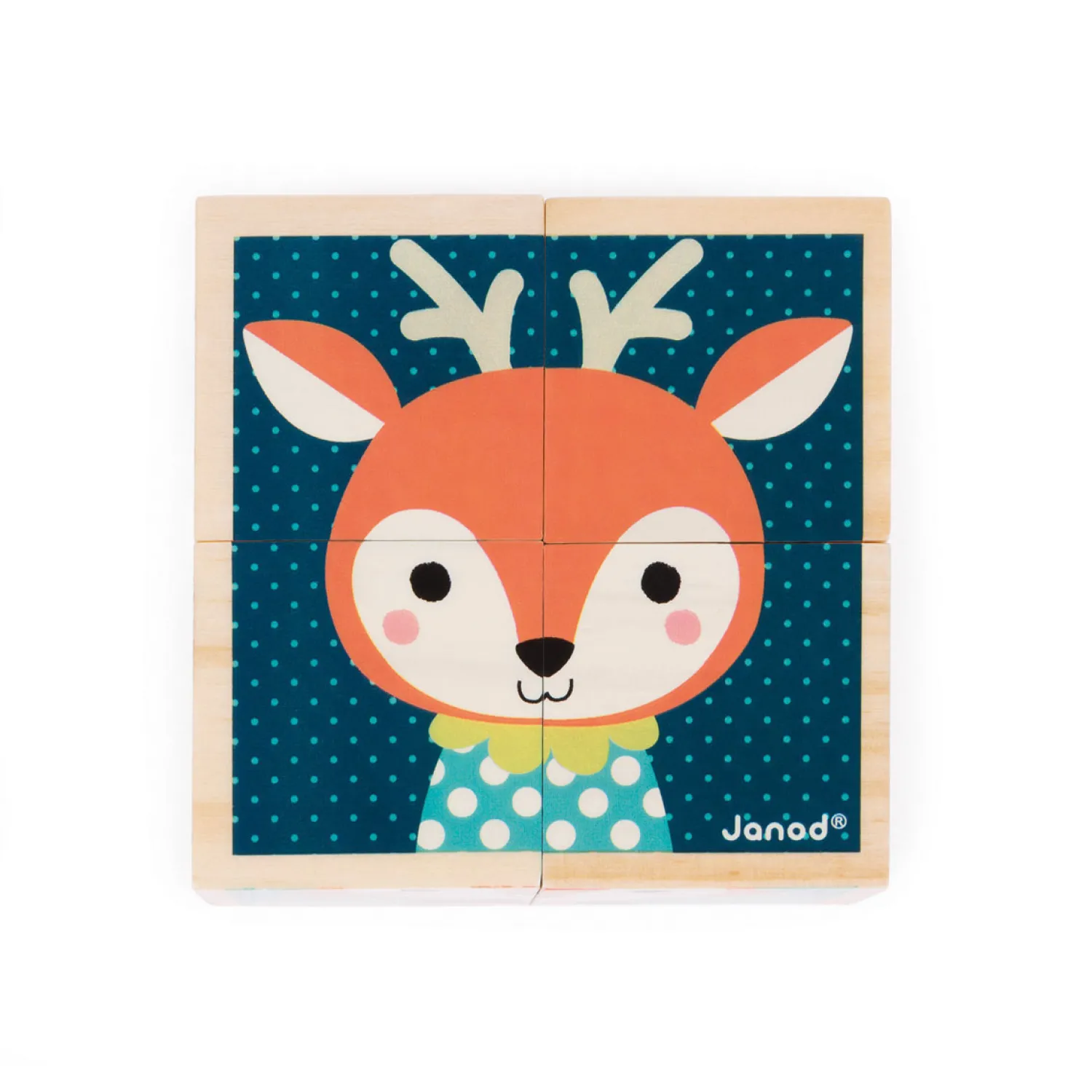 Maak je eerste puzzel met deze blokken van Janod. Puzzel de 4 blokken op de juiste manier tegen elkaar aan en zie één van de 6 bosdieren verschijnen. De puzzel is gemaakt van stevig hout en afgewerkt met prachtige afbeeldingen.