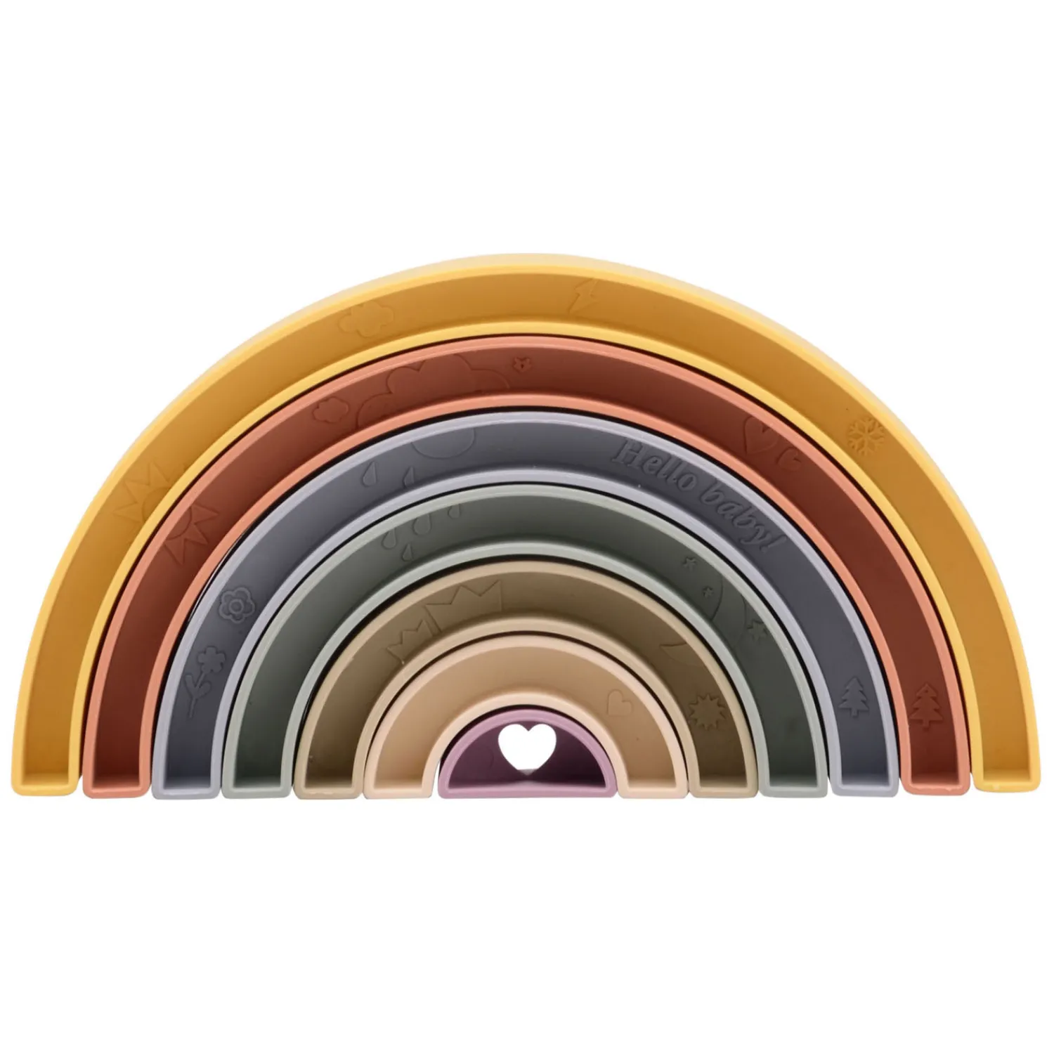 Oefen je motoriek en kleurenkennis met deze mooie stapelregenboog! Gemaakt van bio plastic. Afmeting: 19,5 bij 3,5 bij 12 centimeter. Geschikt voor kinderen vanaf 12 maanden oud.
