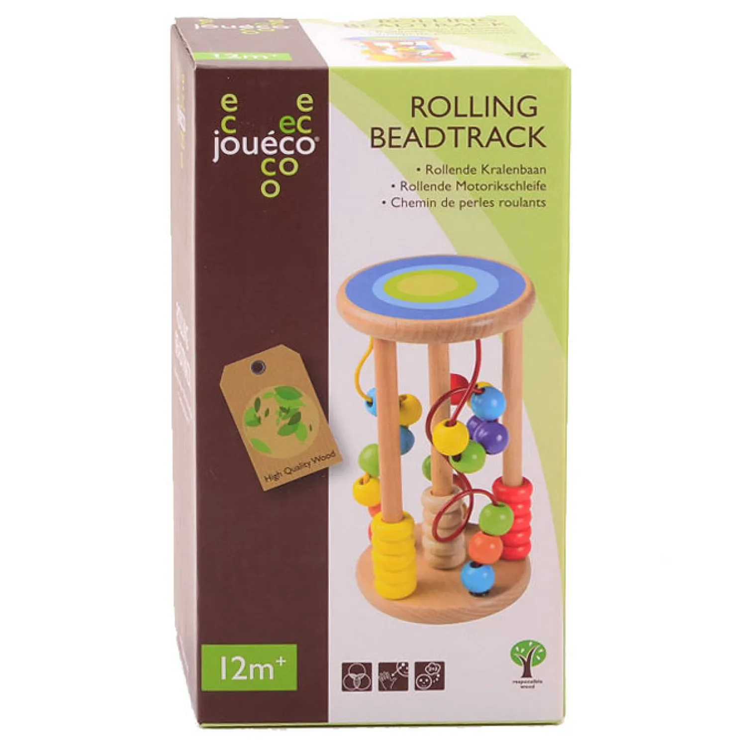 Rol, schud of draai de kralen aan deze rollende kralenbaan van Jouéco. De kralenbaan is gemaakt van stevig hout en bevat 3 staven en 3 metalen motoriekspiralen met gekleurde houten kralen eraan. Dankzij de ronde zijden rolt de kralenbaan ook gemakkelijk over de grond voor nog meer plezier! Spelen met de kralenbaan stimuleert de ontwikkeling van hand-oogcoördinatie, kleurherkenning en rekenen.
