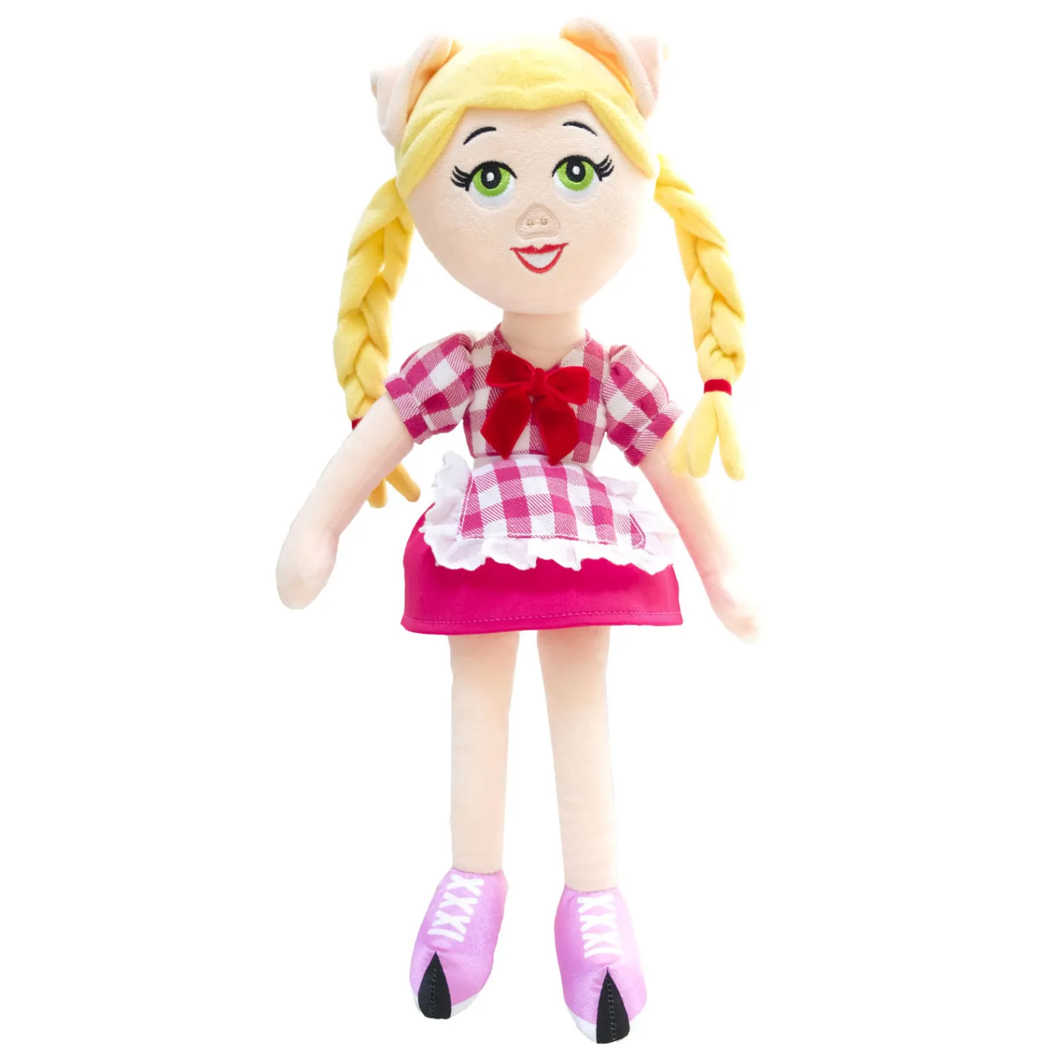 • Hanne knuffelpop met muziek in 3 biggetjes outfit