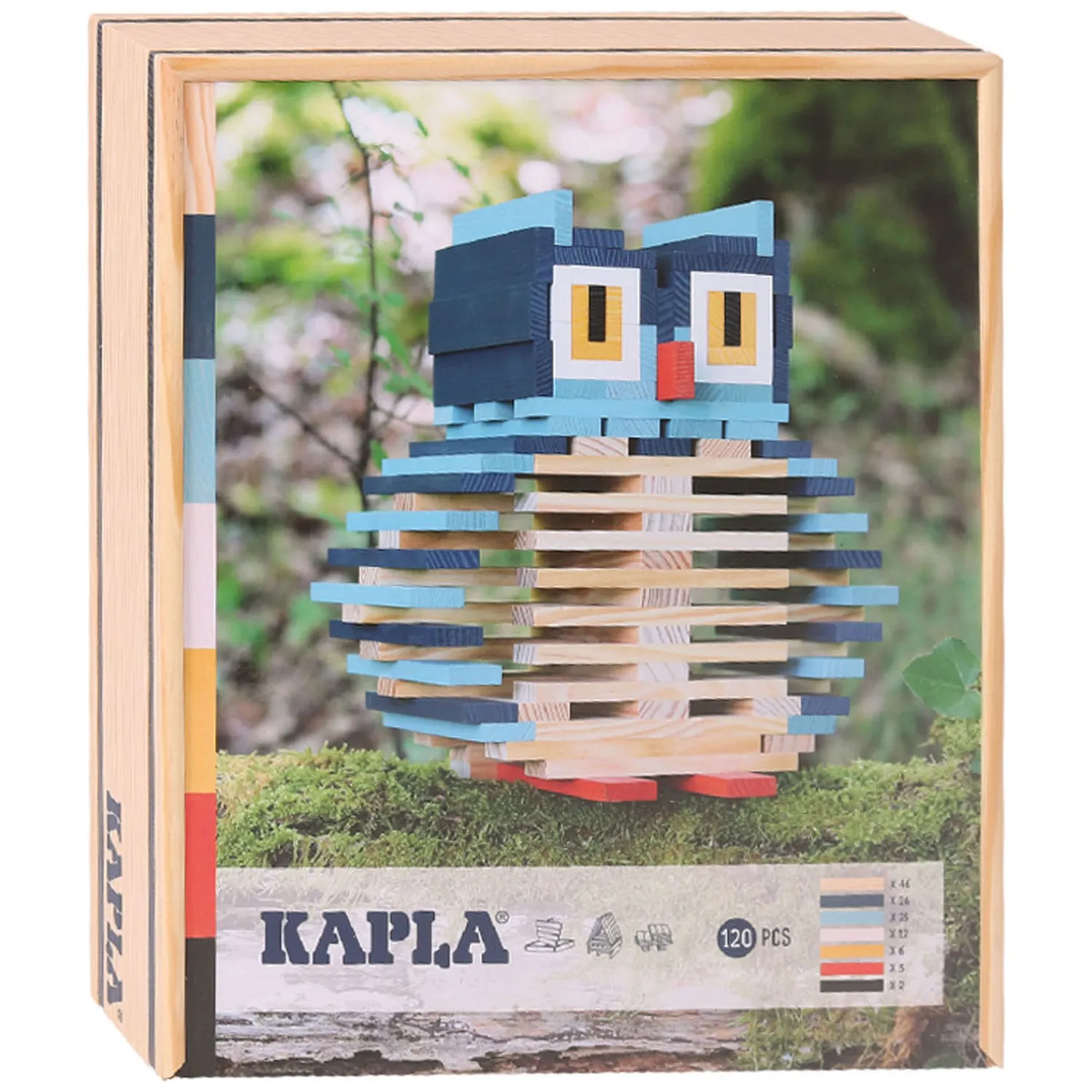 De KAPLA-plankjes, afkomstig uit Franse wouden die 100% hernieuwbaar zijn, zijn in grenenhout uit de Landes, natuurlijk en onbehandeld. De gekleurde plankjes zijn gekleurd met voedselverf.