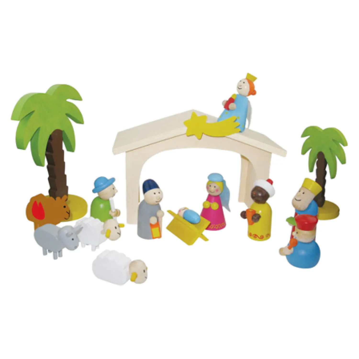 Mooi uitgevoerde kerststal van hout. Geef deze kerststal een mooie plek in huis en je kunt elke dag toeleven naar het kerstfeest! De speelfiguren hebben een hoogte van ongeveer 8 cm. De dieren hebben een hoogte van 6 cm.