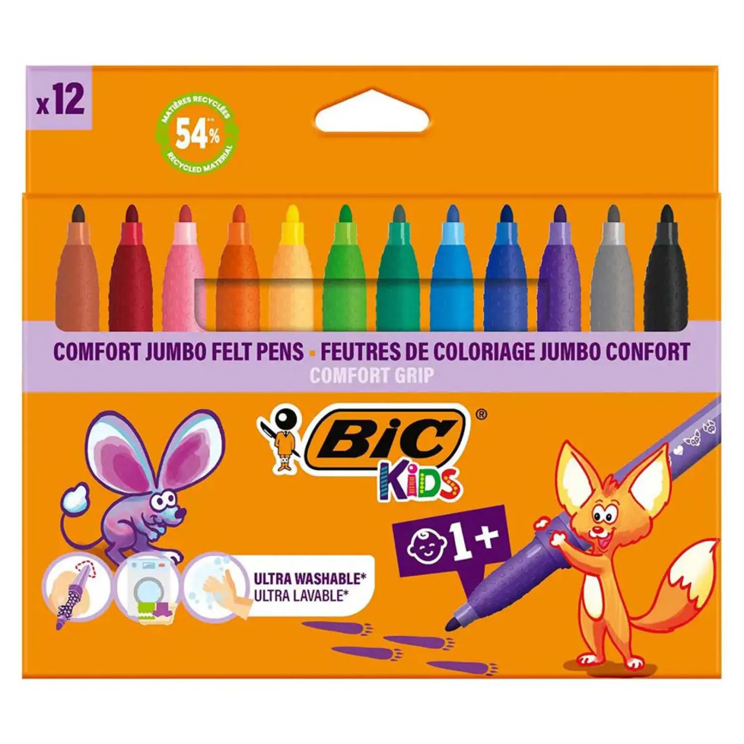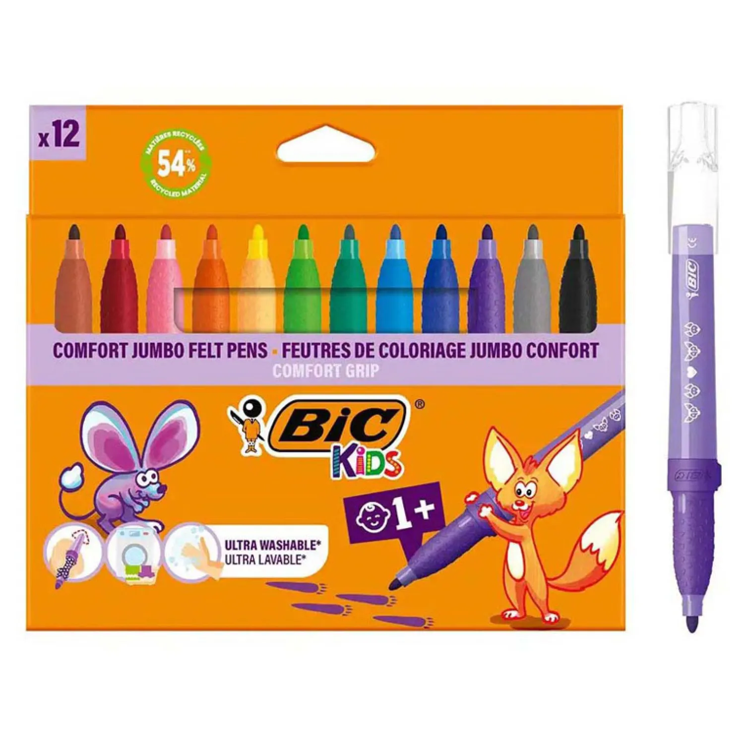 •Set van 12 jumbo viltstiften in heldere kleuren