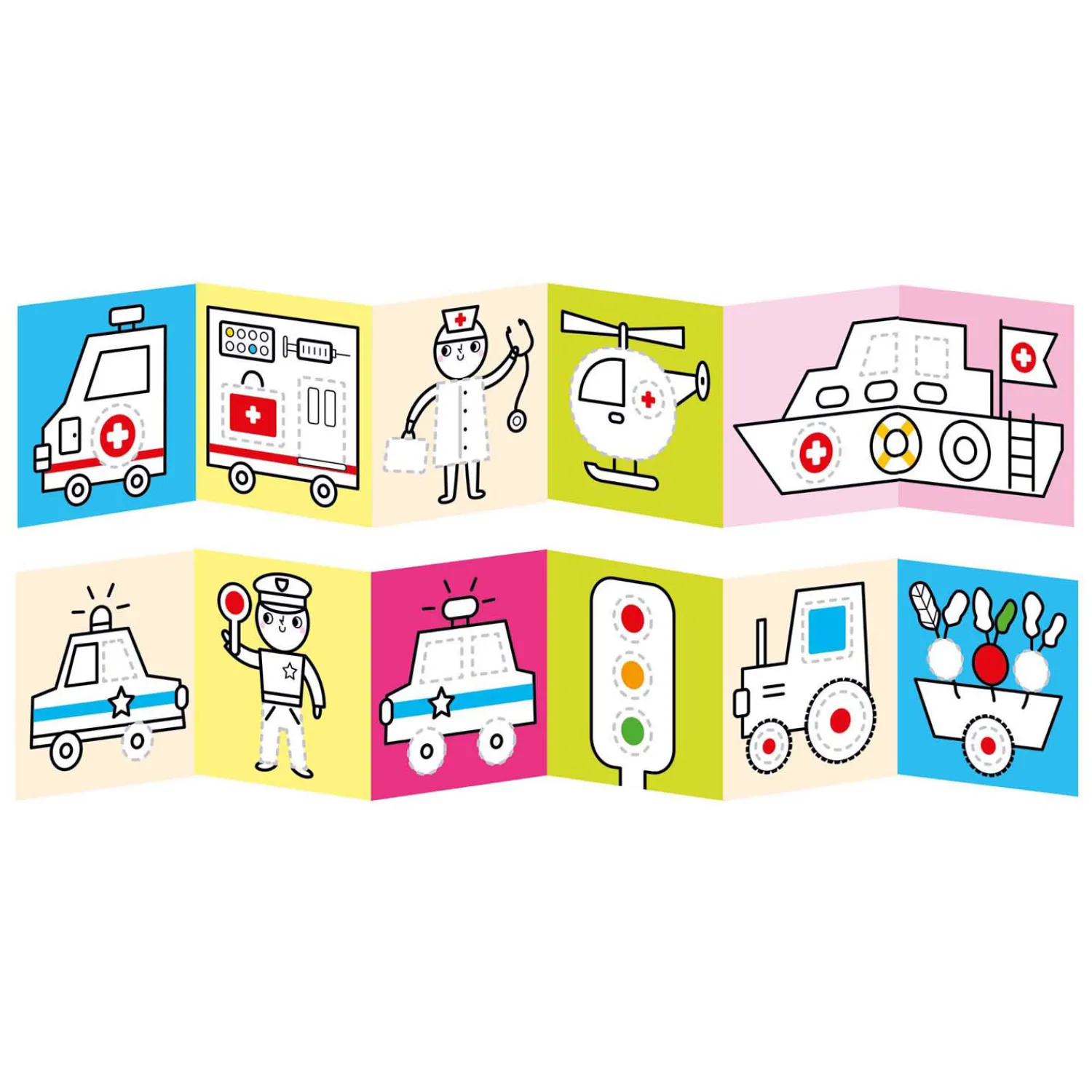 Dit populaire onderwerp en de leuke oefeningen motiveren kinderen om vormen na te bootsen en objecten steeds gedetailleerder te tekenen. Het is een natuurlijke introductie tot leren schrijven en tevens een middel tot creatieve expressie.