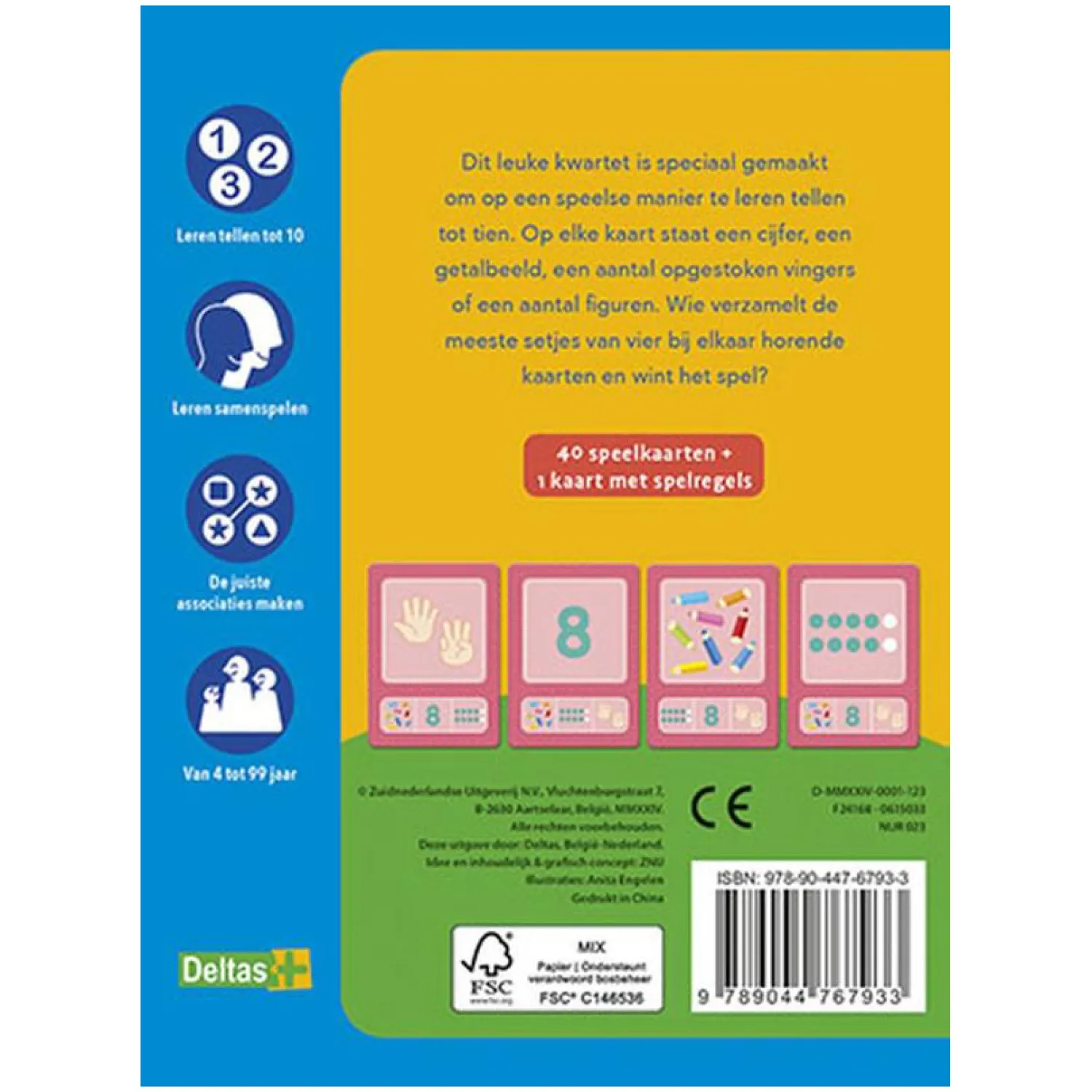De set bevat 40 speelkaarten en 1 kaart met de spelregels. Geschikt voor kinderen vanaf 4 jaar.