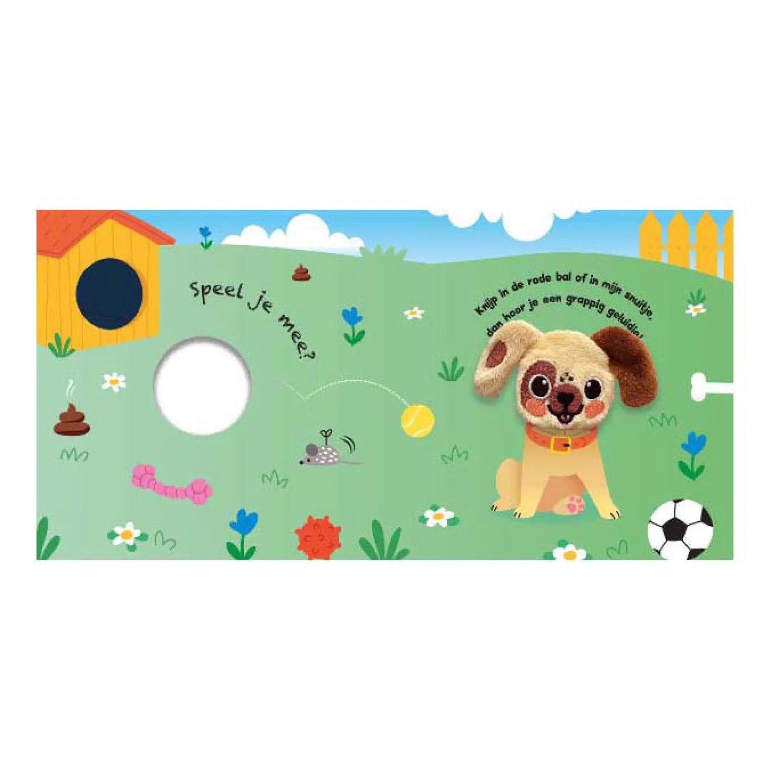 Ga jij met het hondje mee op avontuur? Dit stevige kartonboek bevat een vingerpop van het hondje met daarin een piepende verrassing! Iedere pagina bevat een vrolijk tekstje op rijm. Een vrolijk vingerpopboekje voor de allerkleinsten.
