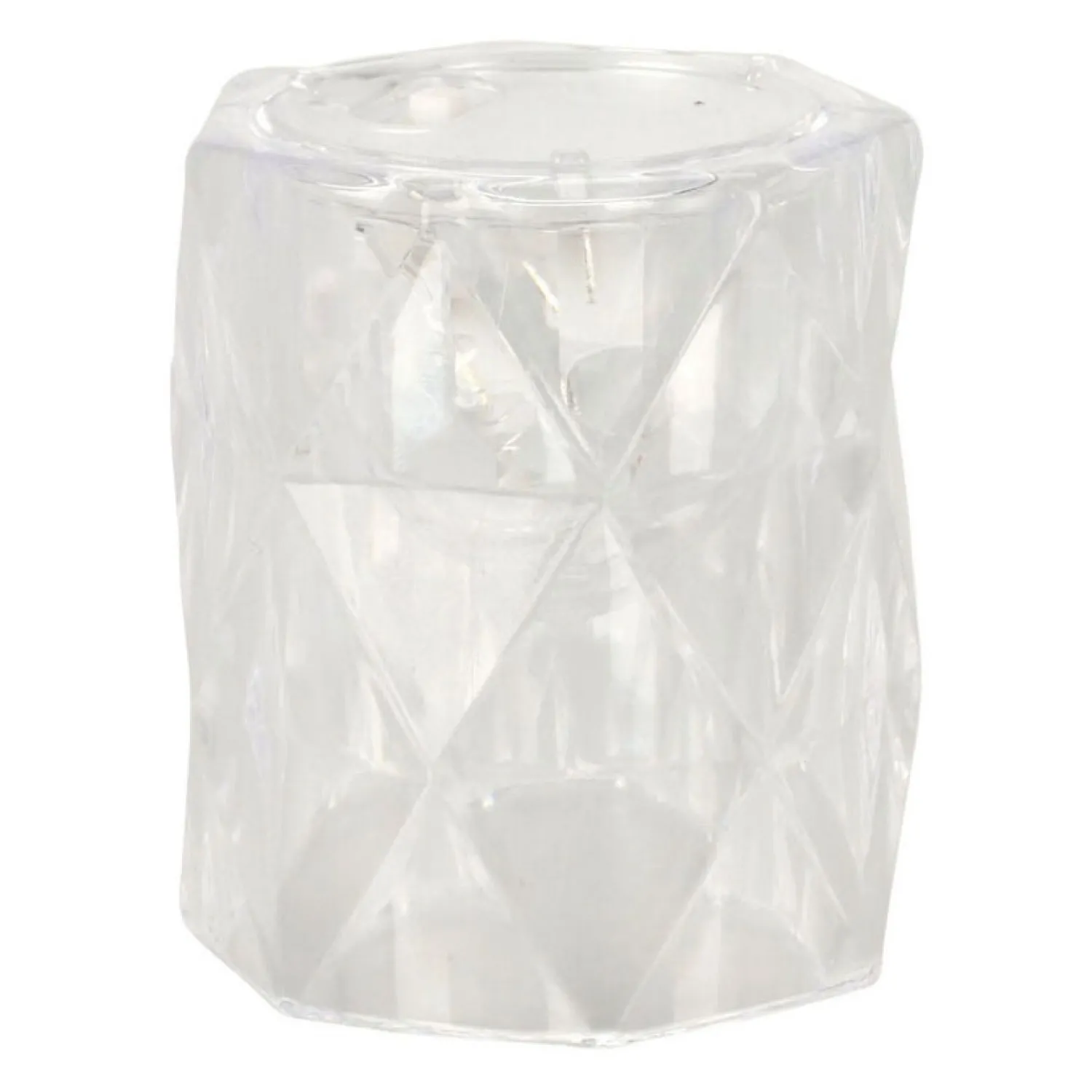 Een directe sfeermaker! In deze set zitten 12 kunststof waxinelichtjes met kristallook. De transparante kaarsenhouders weerschijnen een prachtig lichtschouwspel van het warmwitte ledlampje vanbinnen. Dit lampje is inbegrepen en werkt op 3 knoopcelbatterijen (inbegrepen). Het ledlichtje is ca. 6 centimeter groot.