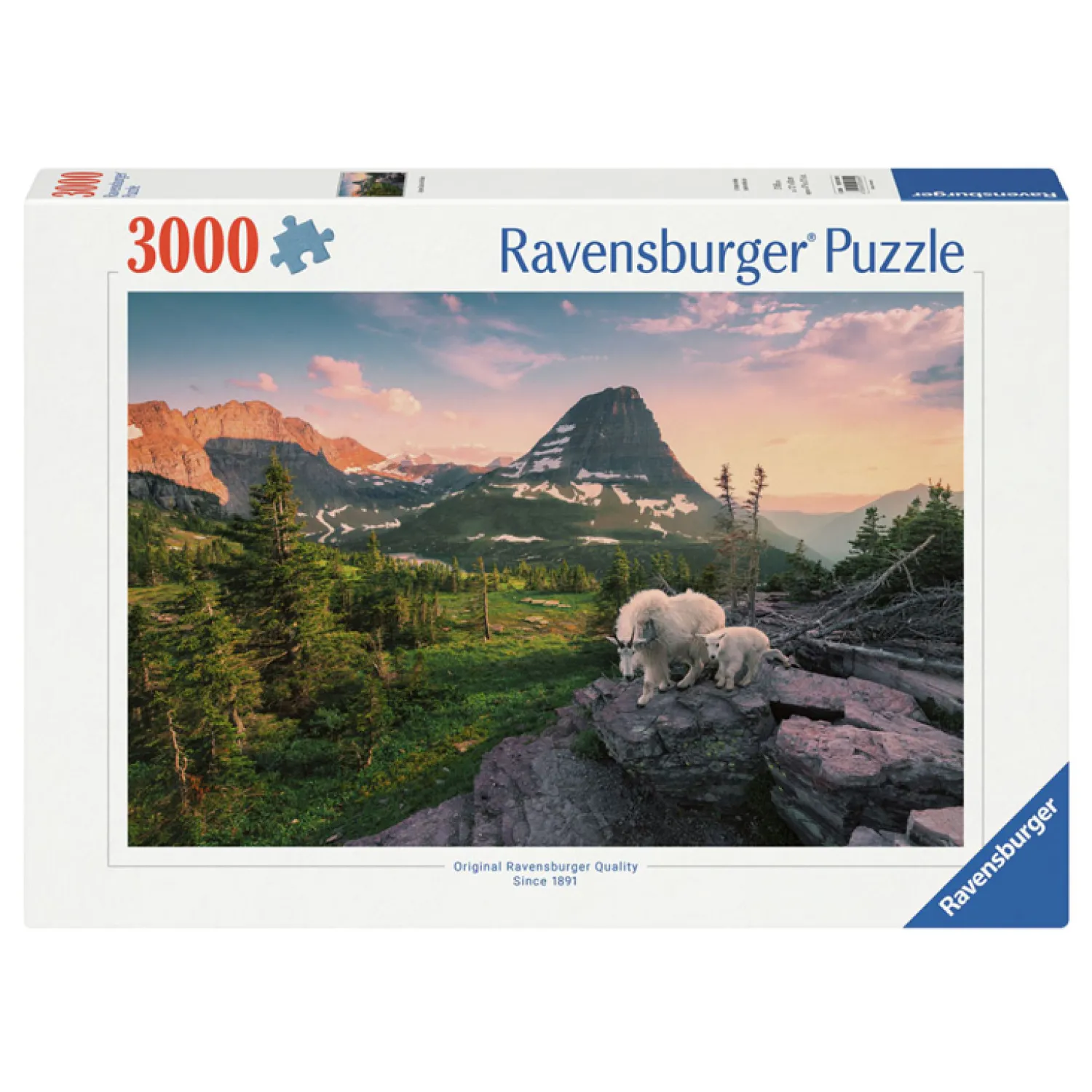 Ontsnap uit de realiteit en stap in de wereld van Ravensburger puzzels. Op het formaat van 3000 stukjes zijn de prachtige afbeeldingen van de puzzels van Ravensburger nog indrukwekkender. Dit is een project voor echte ervaren puzzelaars. Dankzij de met de hand gemaakte stansmessen is de vormvariatie van de stukjes oneindig. Jong en oud zullen genieten van deze Alpine geit met jong puzzel met 3000 stukjes.