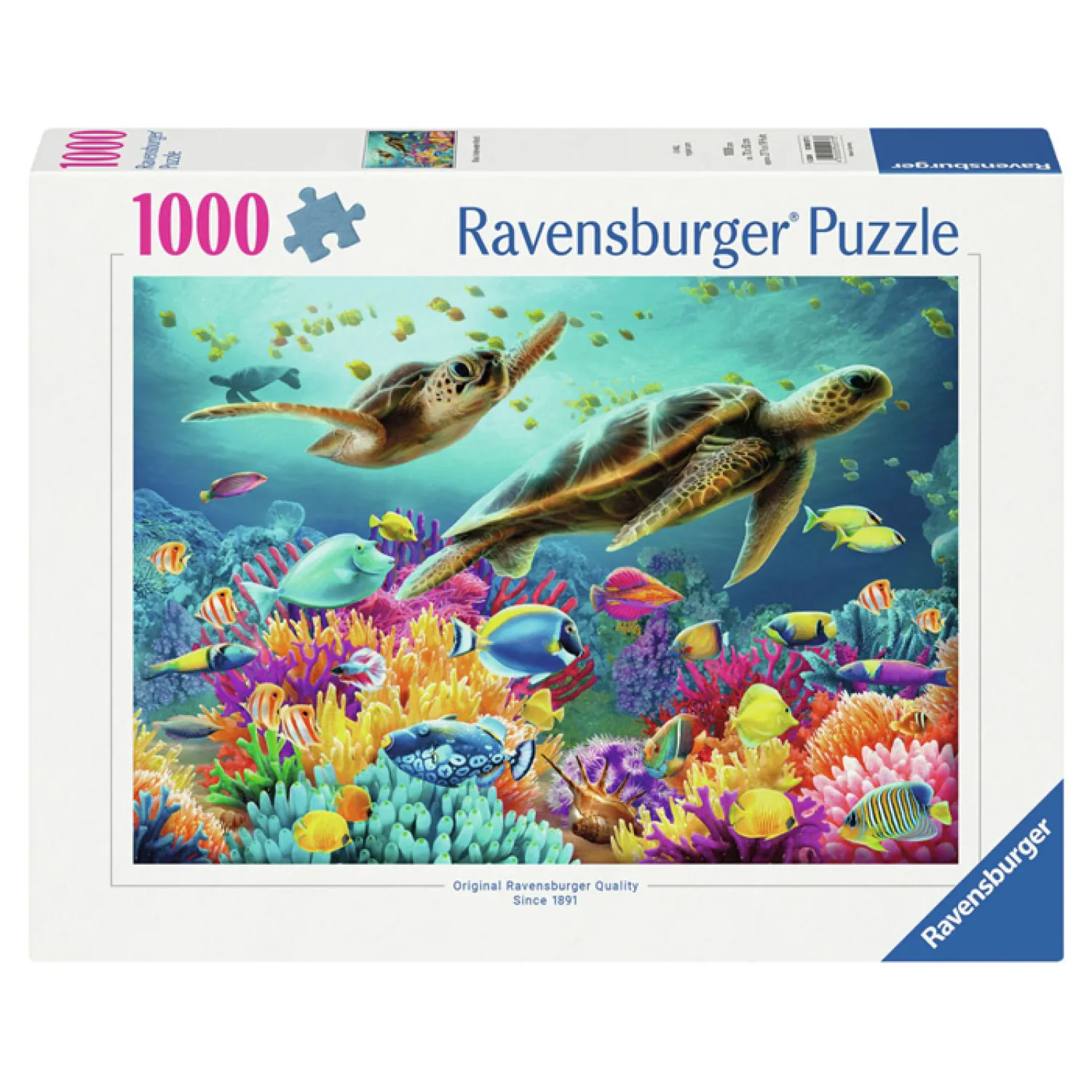 Ontsnap uit de realiteit en stap in de wereld van Ravensburger puzzels. Deze Ravensburger puzzel van 1000 stukjes is geschikt voor zowel beginnende als ervaren puzzelaars. En omdat onze geliefde puzzels een standaard formaat hebben, kun je het resultaat inlijsten en ophangen. Dankzij de met de hand gemaakte stansmessen is de vormvariatie van de stukjes oneindig. Jong en oud zullen genieten van deze Blauwe onderwaterwereld puzzel met 1000 stukjes.