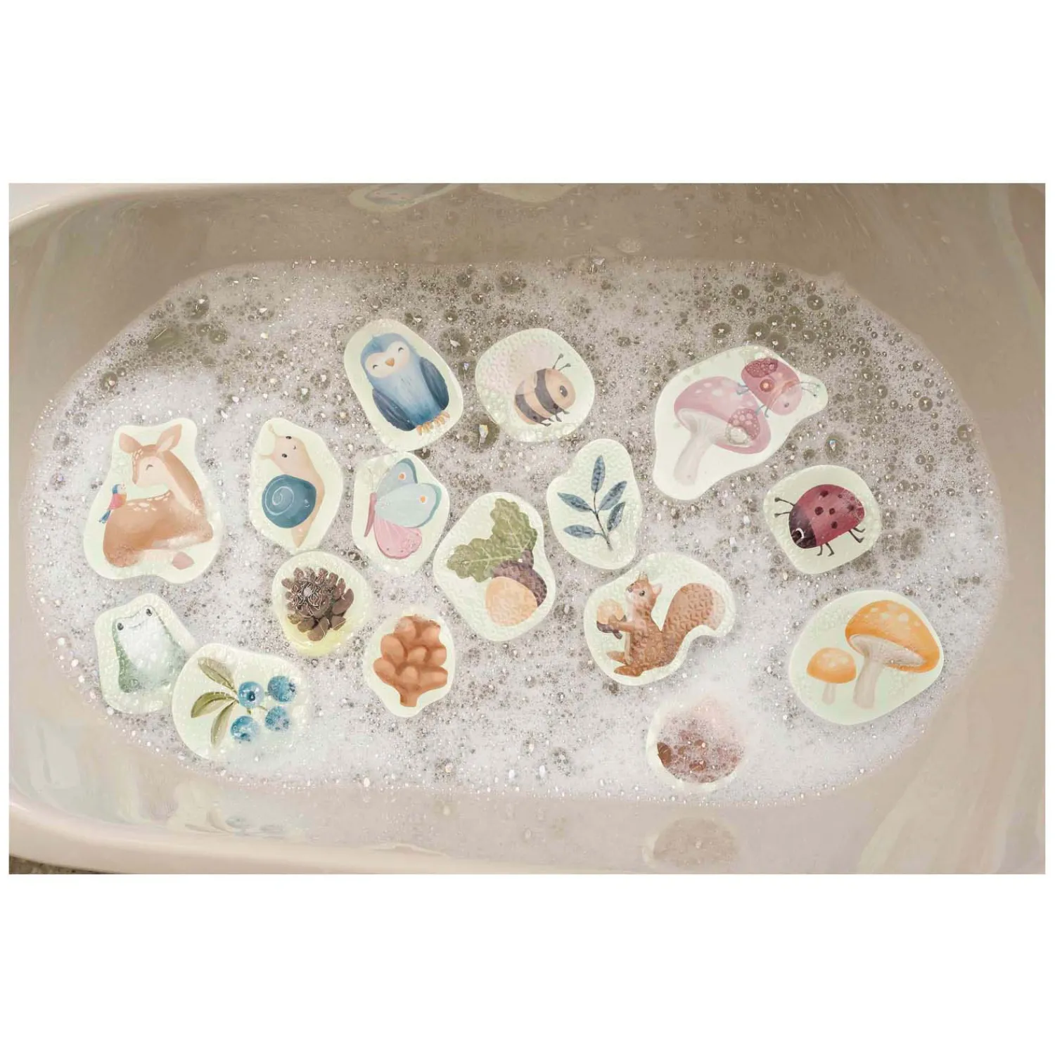 In de set zitten 16 figuren, verpakt in een opbergzakjes met zuignappen, uit het Forest Friends & Fairy Garden thema. Geschikt voor kinderen vanaf 10 maanden.