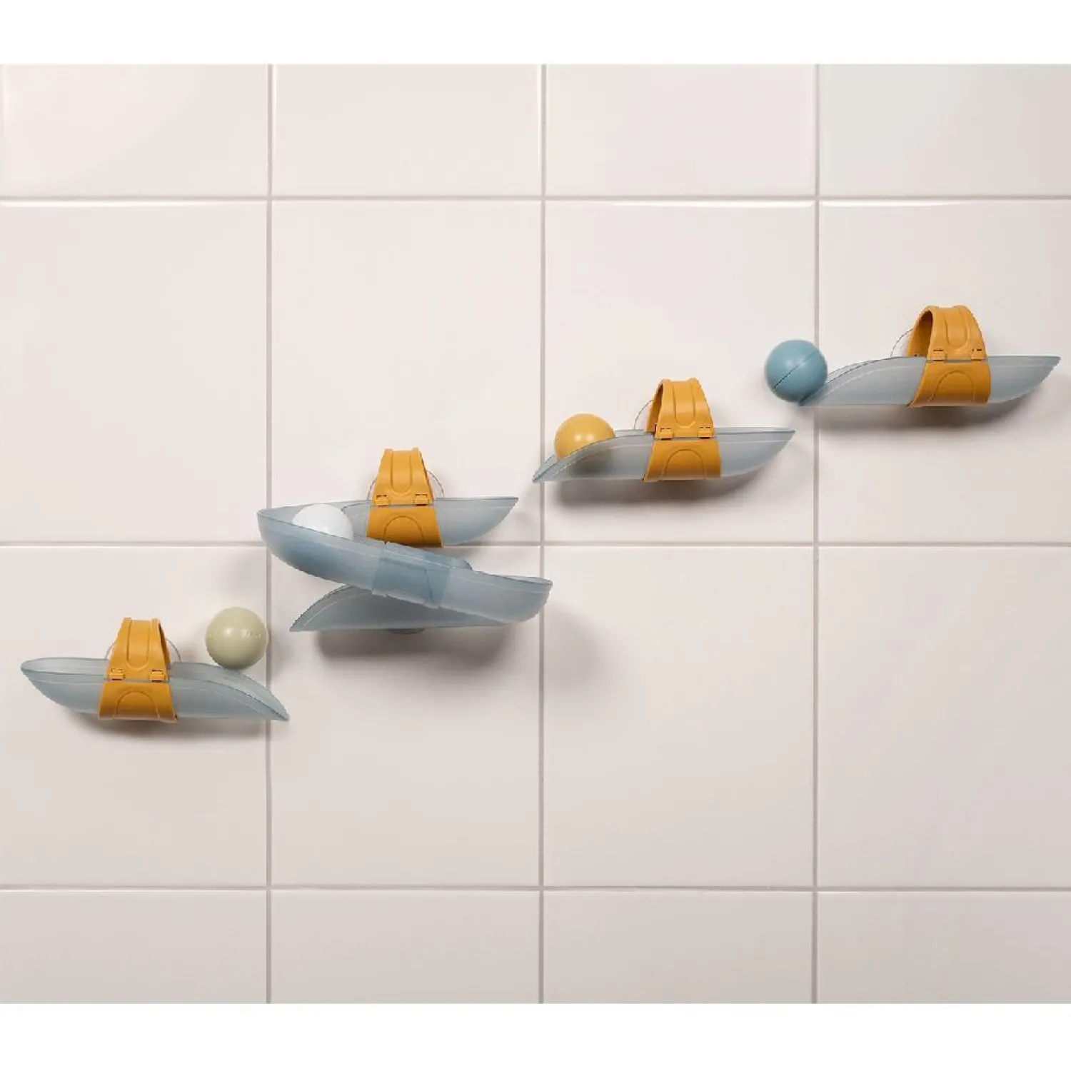 Oneindig veel badderpret met deze Little Dutch waterbaan, uitgevoerd in een blauwe kleur. De set bevat 4 elementen voorzien van zuignappen en 4 gekleurde balletjes. Hang de waterbaan op aan de bad-of douchewand en laat de ballen rollen. En wil je de balletjes sneller laten rollen, dan giet je er gewoon een beetje water bij! Verpakt in een full colour doos. Geschikt voor kinderen vanaf 10 maanden.