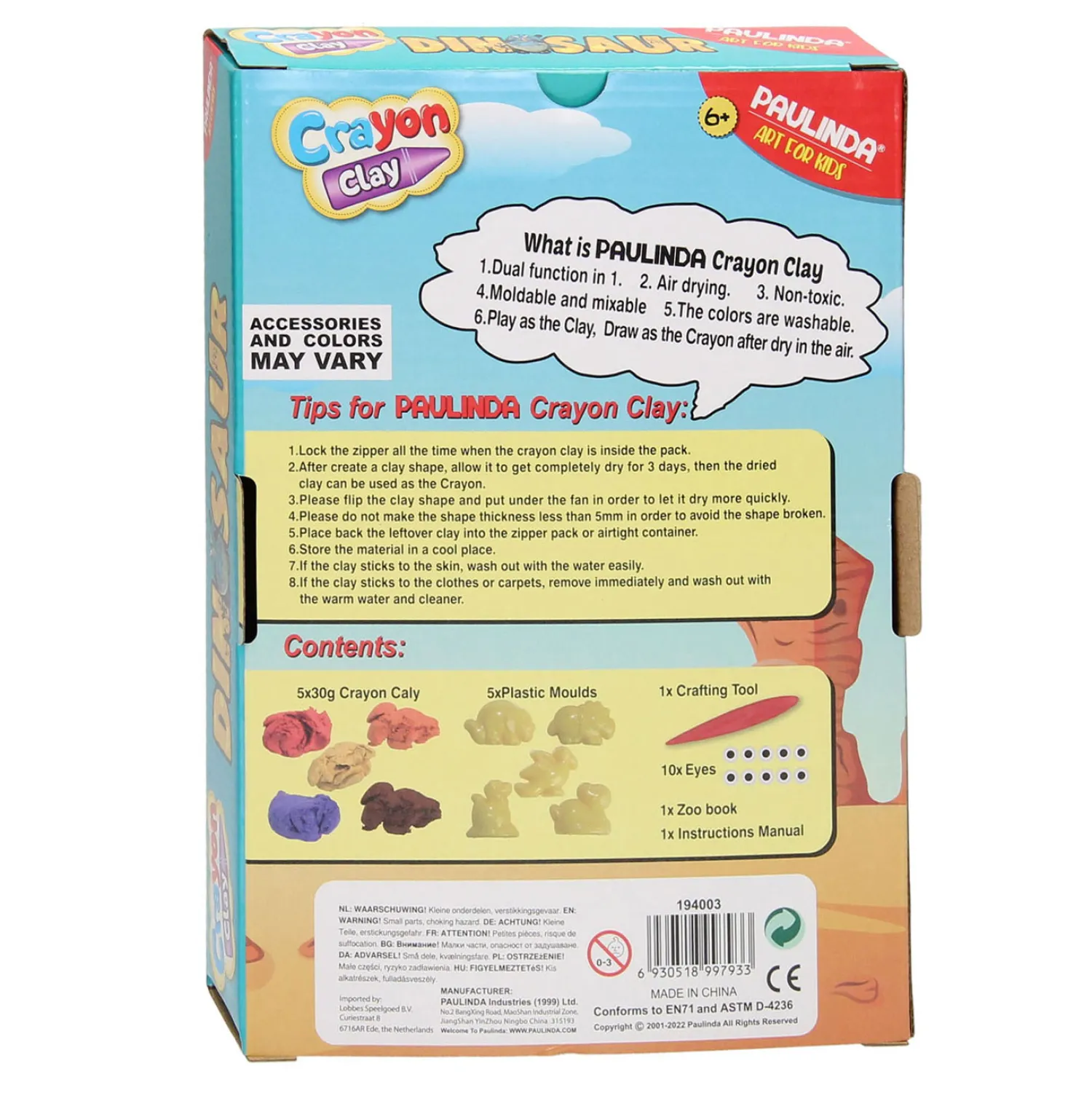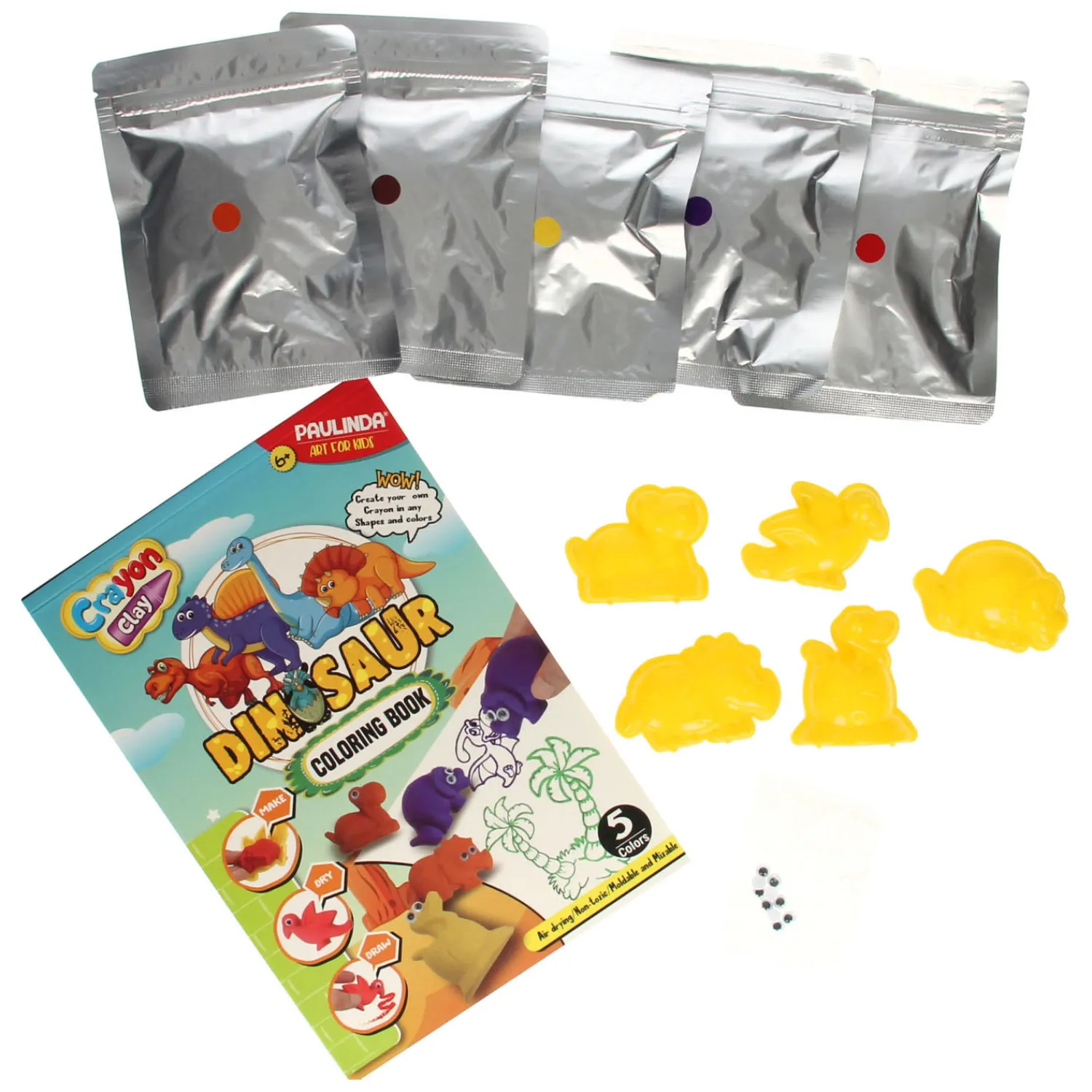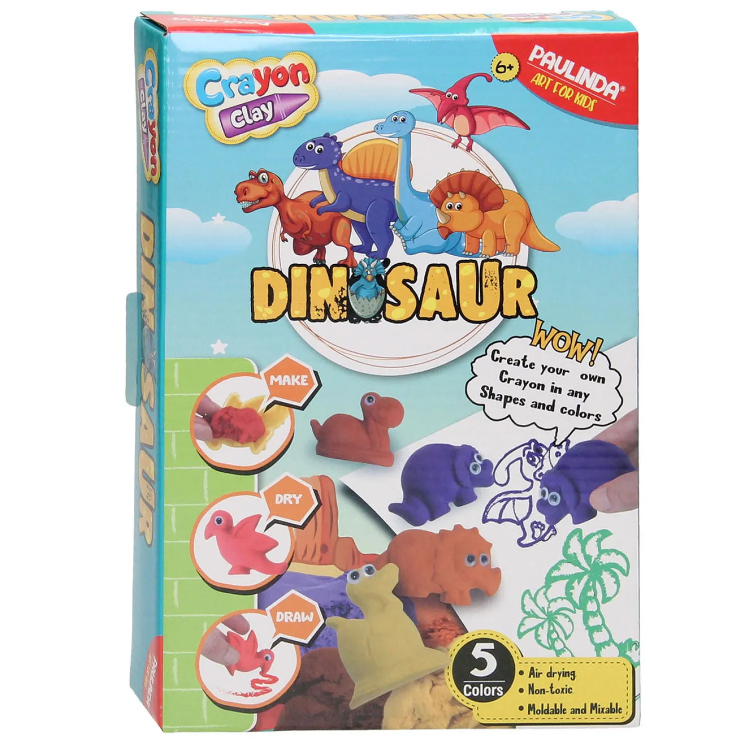De knutselset bevat vijf kleuren krijt om zelf te maken en diverse dino. Gemaakt van niet-giftige materialen en geschikt voor kinderen vanaf 6 jaar.