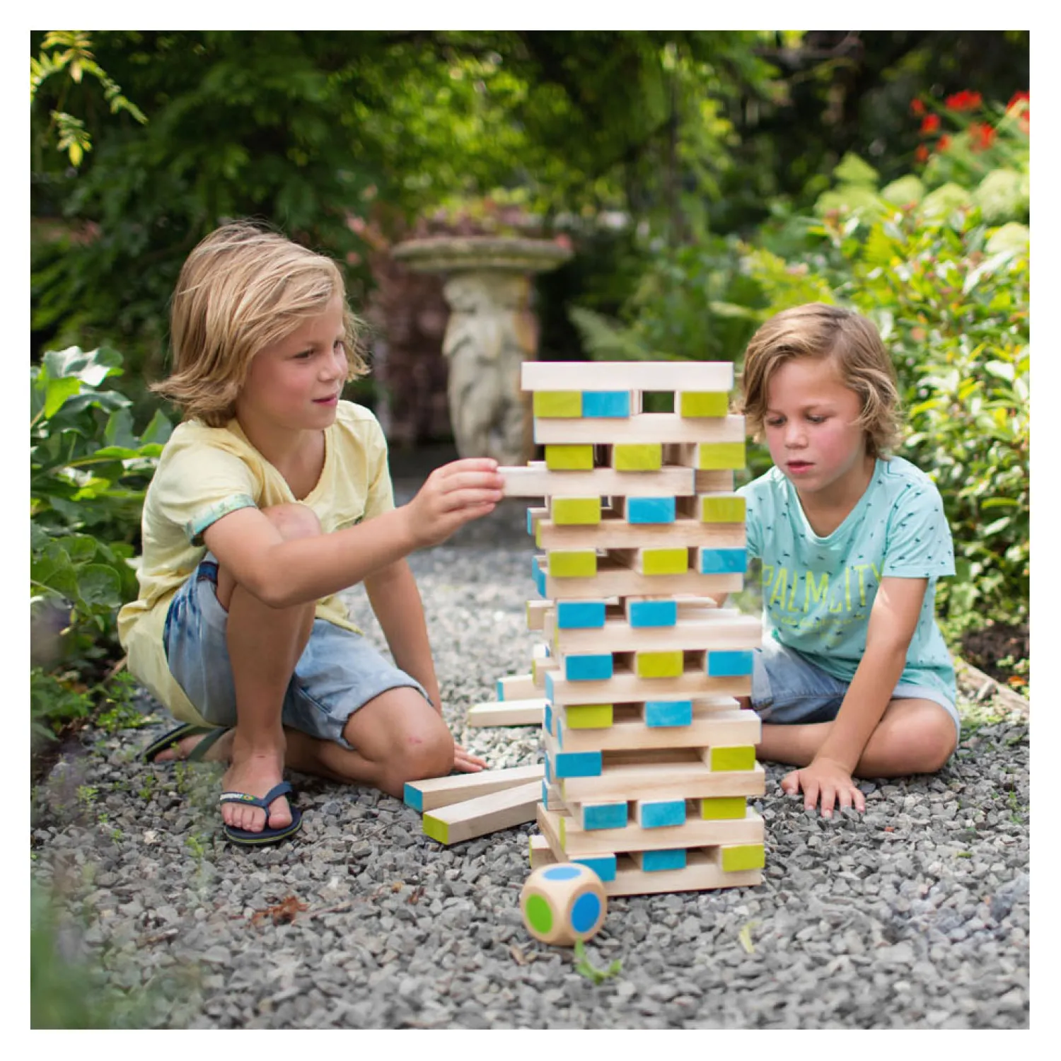 Inhoud: 60 blokken, 1 dobbelsteen.