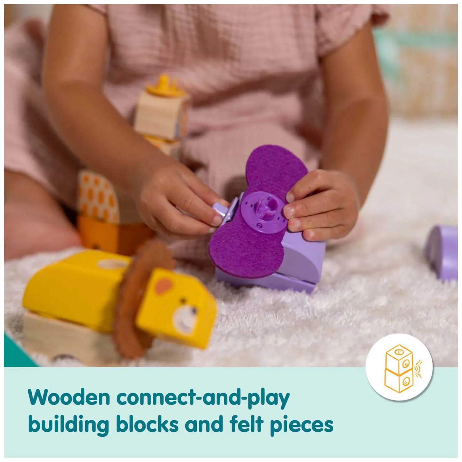 Van een stoere leeuw met vilten manen tot een elegante giraffe, een vrolijke zebra of een knorrige krokodil – alles is mogelijk. De grote verbindingsstukken klikken eenvoudig in en uit elkaar, waardoor bouwen veilig, intuïtief én eindeloos herhaalbaar wordt. En dankzij het open einde van het spel kunnen kinderen hun eigen dieren en fantasiefiguren bedenken, keer op keer.
