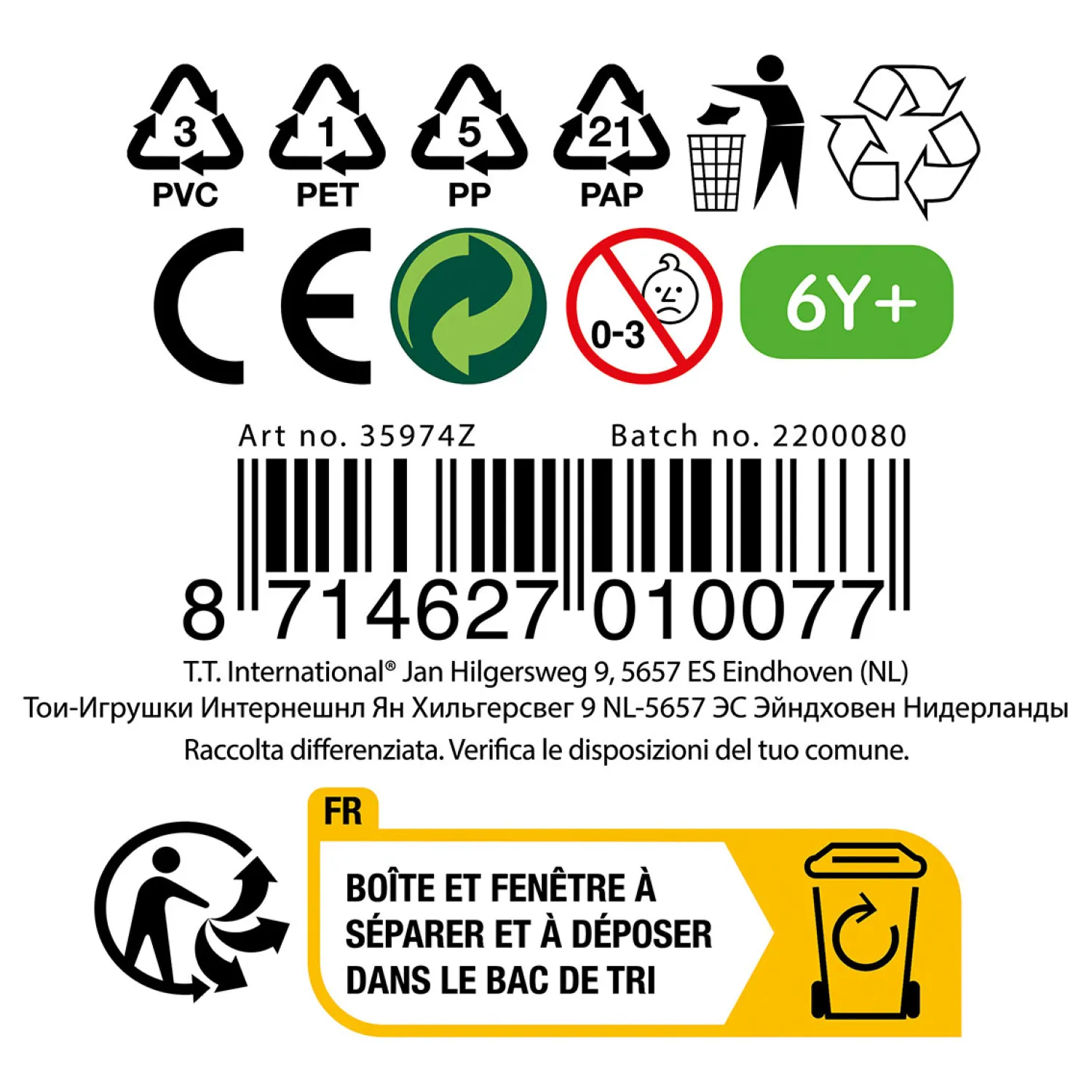 - Waarschuwing: Niet geschikt voor kinderen onder de 3 jaar ivm kleine onderdelen.