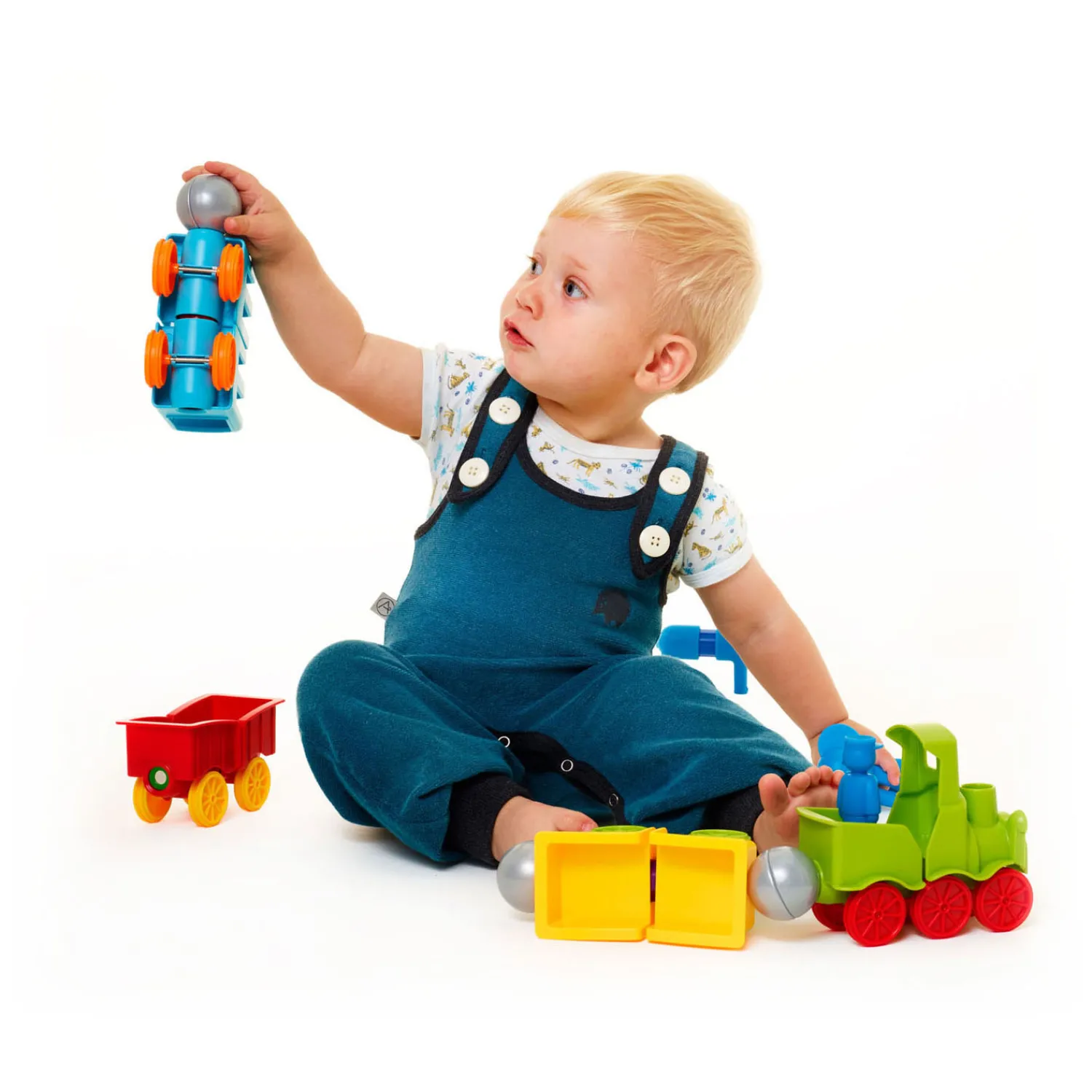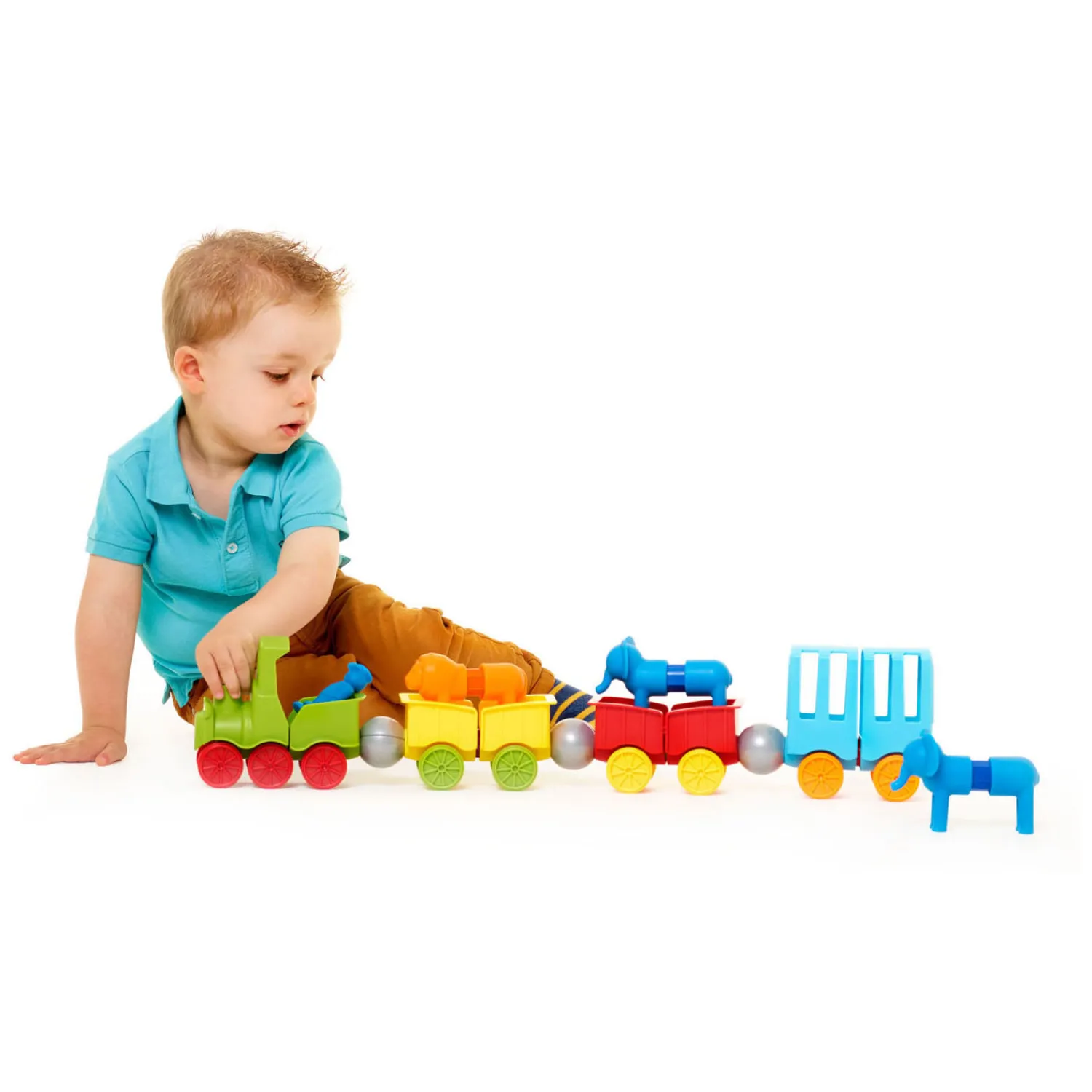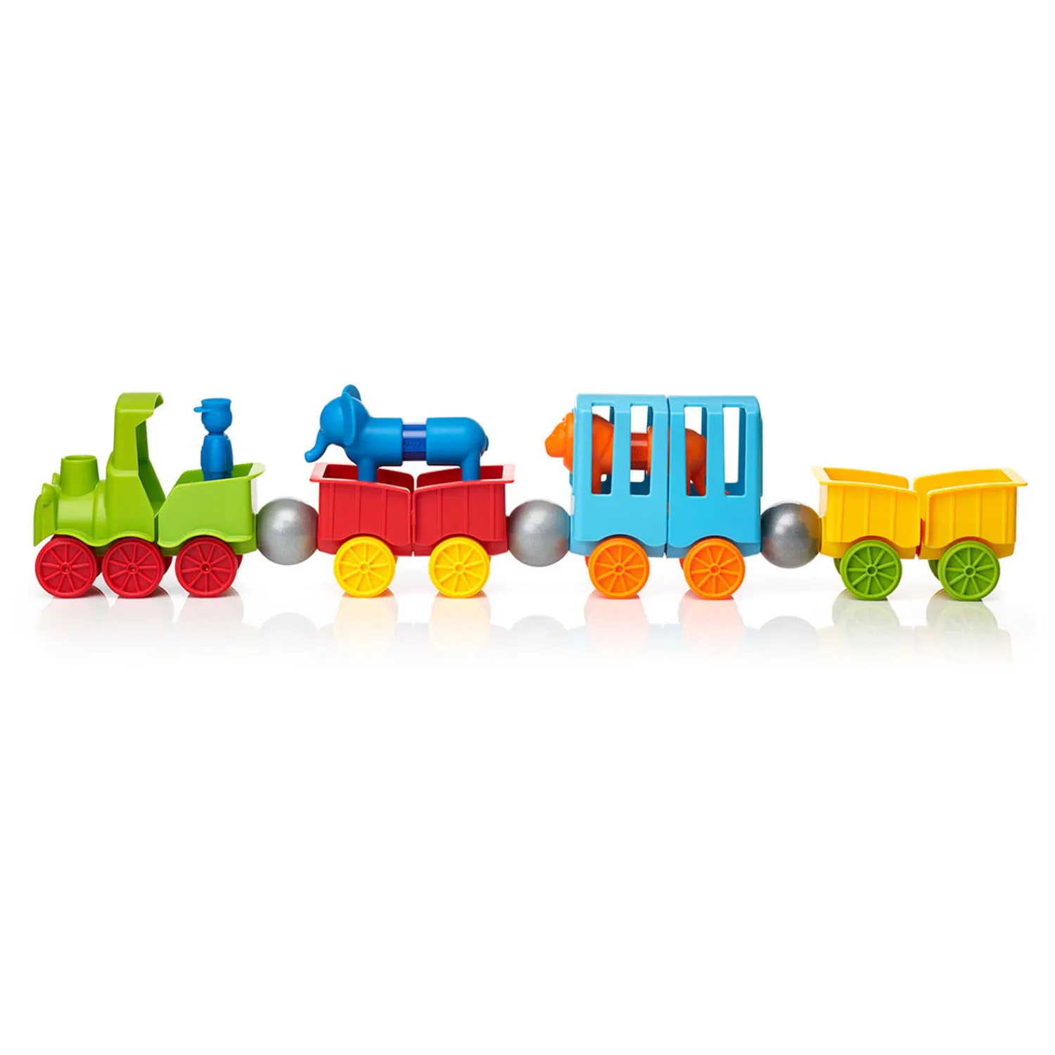 Rijd met de dieren naar het circus met deze circustrein van SmartMax. Verbind de dieren aan elkaar en plaats ze in de wagons. Laat de locomotief voorop rijden en breng alle dieren veilig naar de plaats van bestemming! De set is gemaakt van zacht kunststof en bevat 8 treindelen, 6 onderdelen van dieren, 7 verbindingsstukken, 3 metalen ballen en een bestuurder. Spelen met de set stimuleert de ontwikkeling van fantasie en laat kinderen kennismaken met magnetisme.