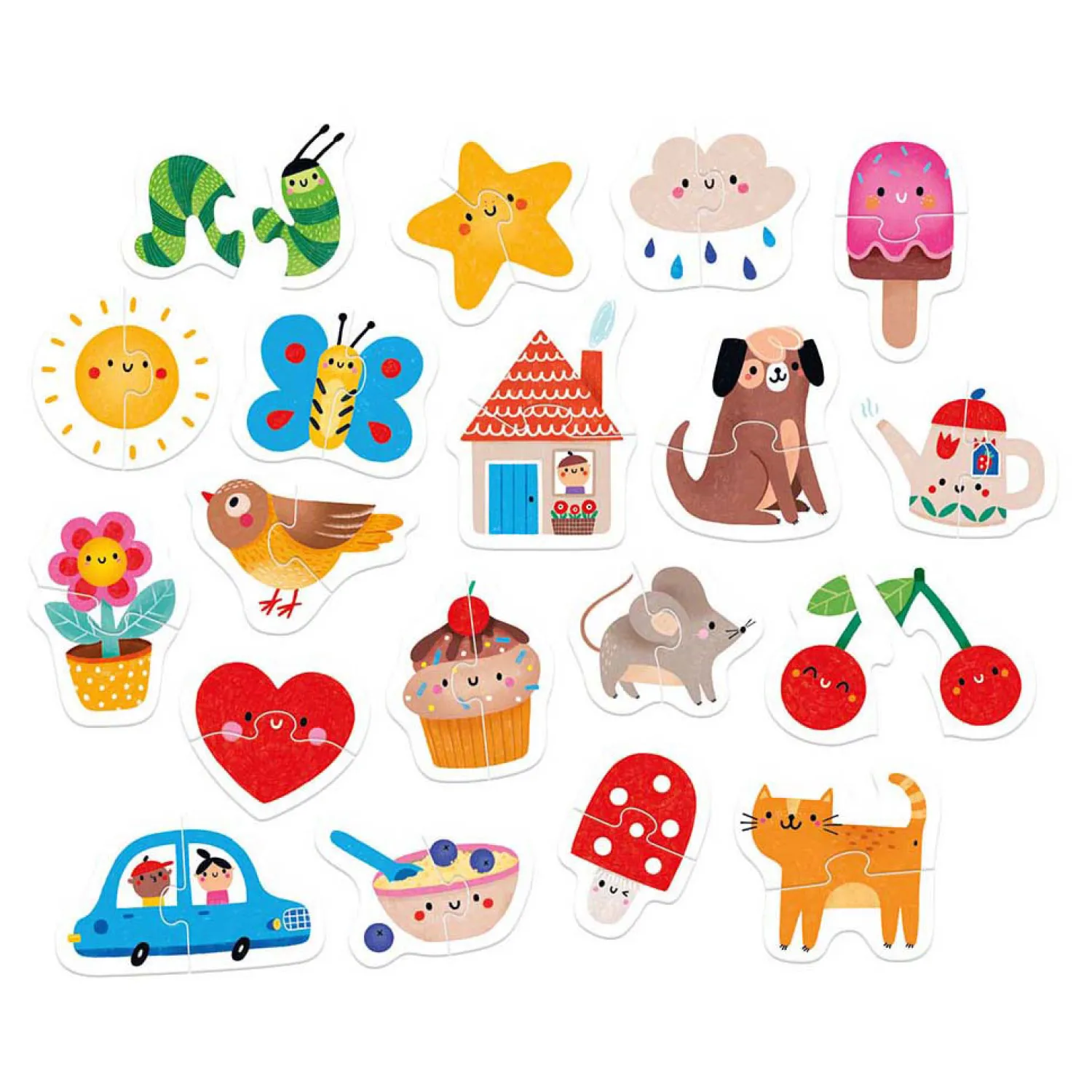 Oefen het vinden van bijpassende paren en de fijne motoriek door stukjes te verbinden. Help je kleintje indien nodig. Je kunt beginnen met slechts een paar paren om het makkelijker te maken.