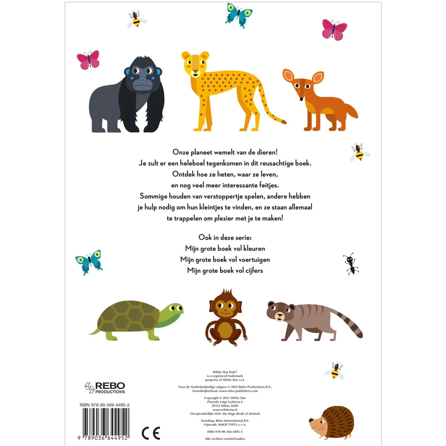 Onze planeet wemelt van de dieren! Je zult er een heleboel tegenkomen in dit reusachtige boek. Ontdek hoe ze heten, waar ze leven, en nog veel meer interessante feitjes. Sommige houden van verstoppertje spelen, andere hebben je hulp nodig om hun kleintjes te vinden, en ze staan allemaal te trappelen om plezier met je te maken!