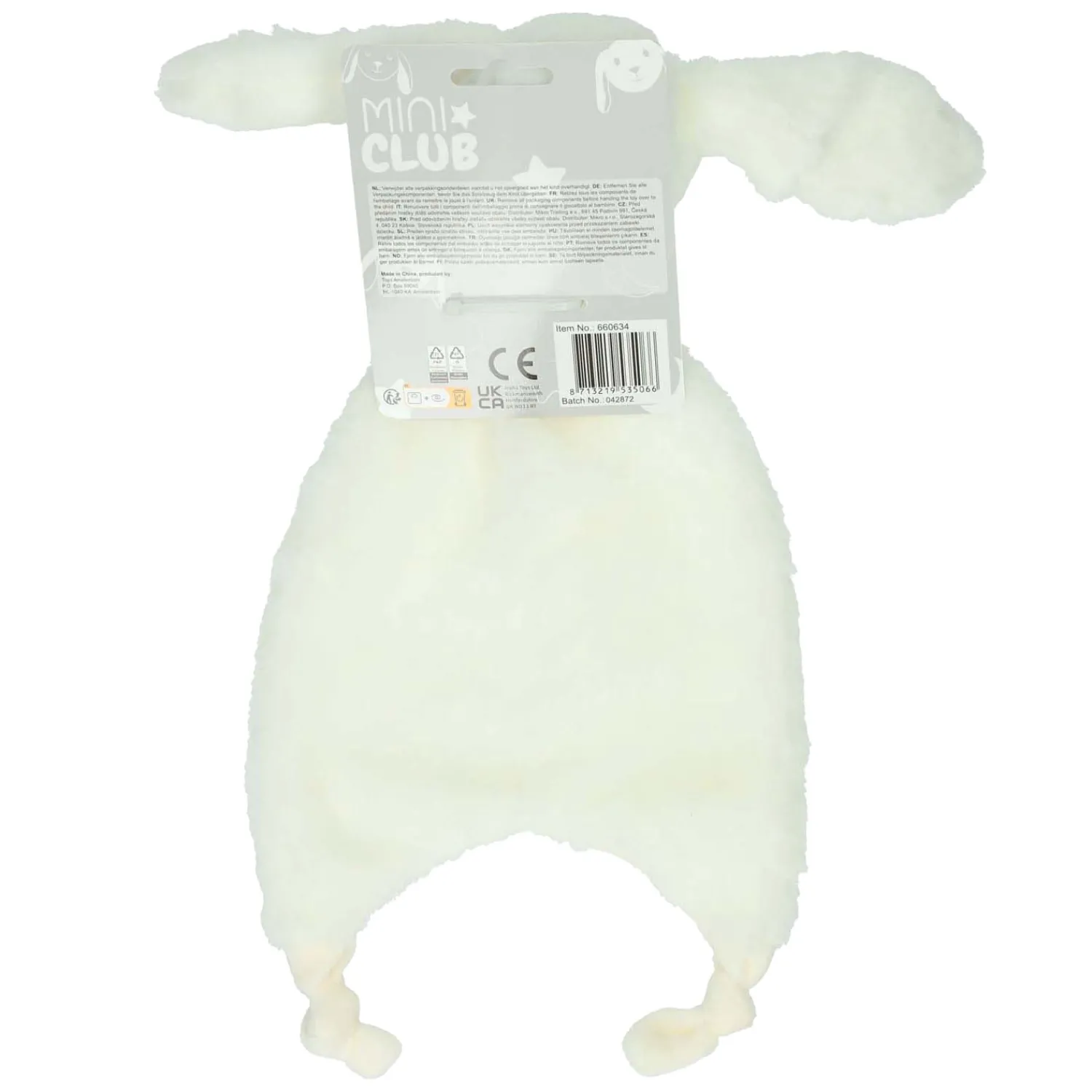 Het knuffeldoekje is wit en 38 cm groot.