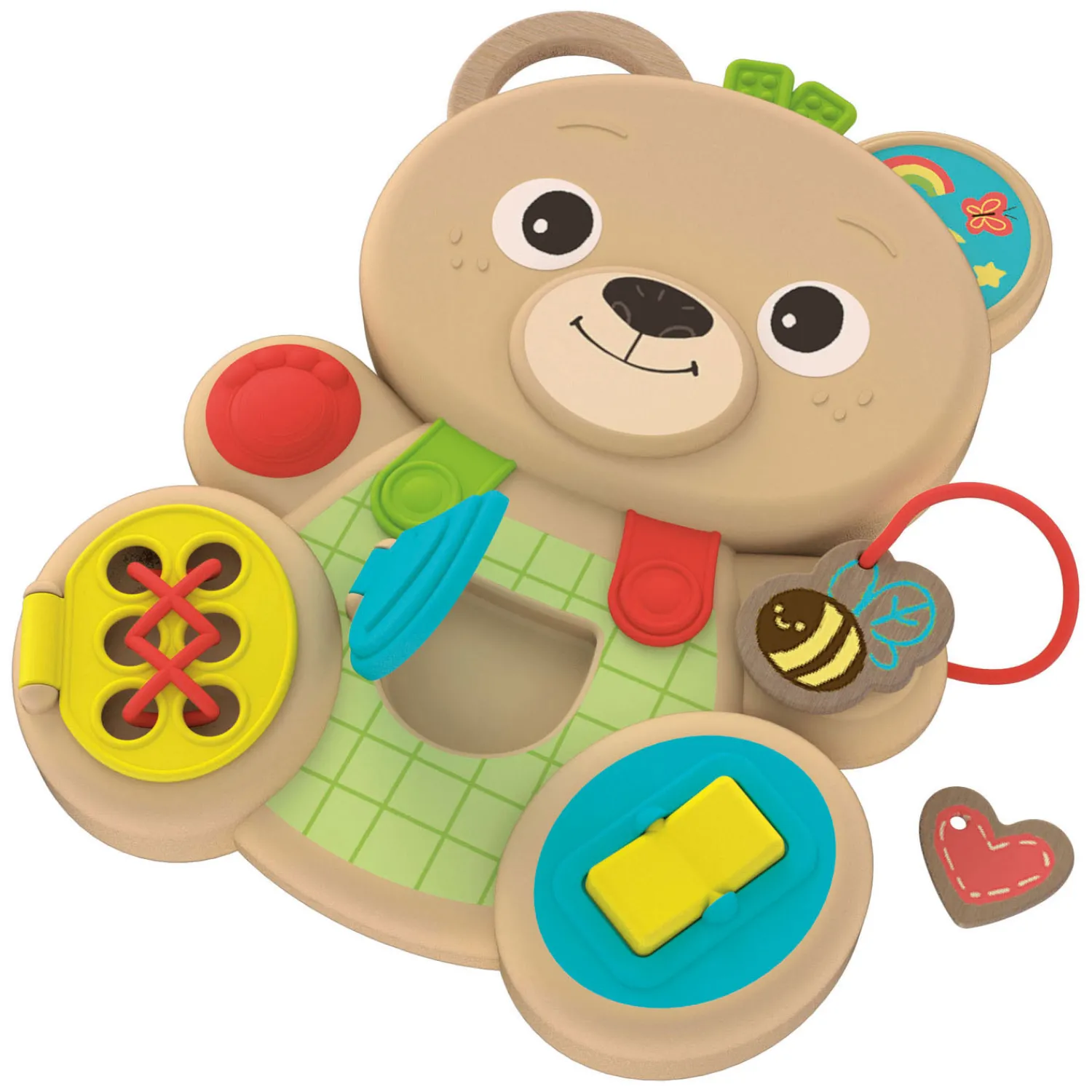Een grappig beertje met elementen van verschillende materialen en heel veel activiteiten om te ontdekken. Het speelgoed is gebaseerd op de Montessori-pedagogie met een schat aan mechanismen en activiteiten om de handvaardigheid van het kind te trainen en zijn concentratievermogen te oefenen. Dankzij de aanwezigheid van verschillende materialen stimuleert het beertje de zintuigen, waardoor het kind leert alledaagse voorwerpen vast te houden. Geschikt vanaf 12 maanden.