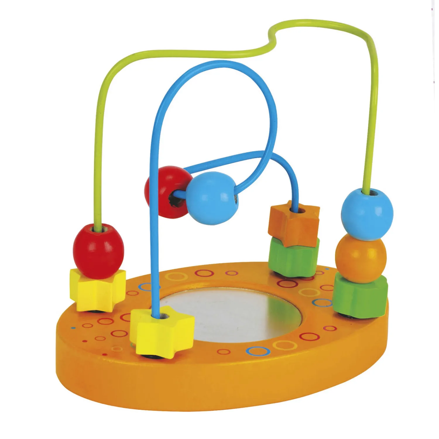 Houten motoriek spiraal met twee spiralen en 10 houten kralen.