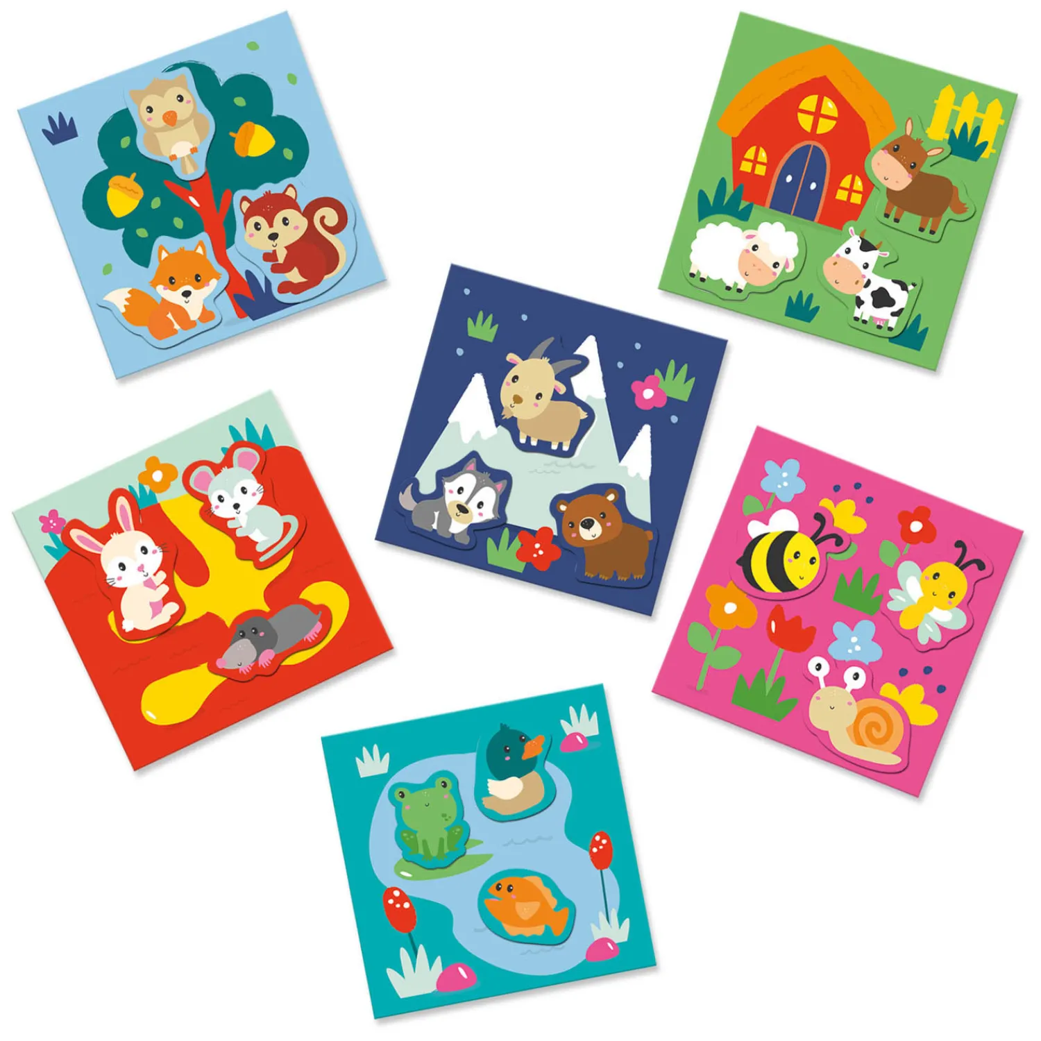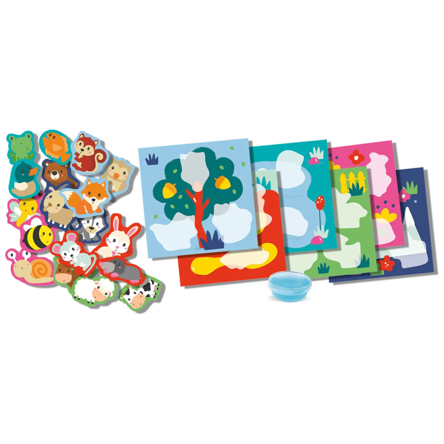Waar woont een beer? Of een koe? En waar slaapt een uil ’s nachts? Met de Waar woon ik? Dieren plakken set ontdekken jonge kinderen welk dier bij welke omgeving hoort! Zo leren zij niet alleen in welk huis een dier slaapt maar wordt ook de fijne motoriek en inbeeldingsvermogen gestimuleerd.
