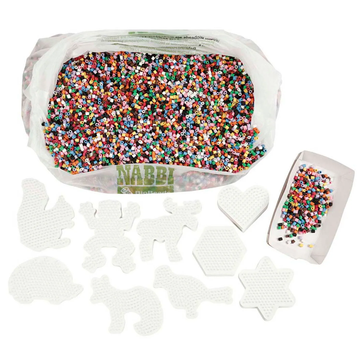 Met de biologisch afbreekbare BioBeads en bioplastische onderplaten van NABBI is het nu veel milieuvriendelijker om vormen en patronen te maken met behulp van strijkkralen.