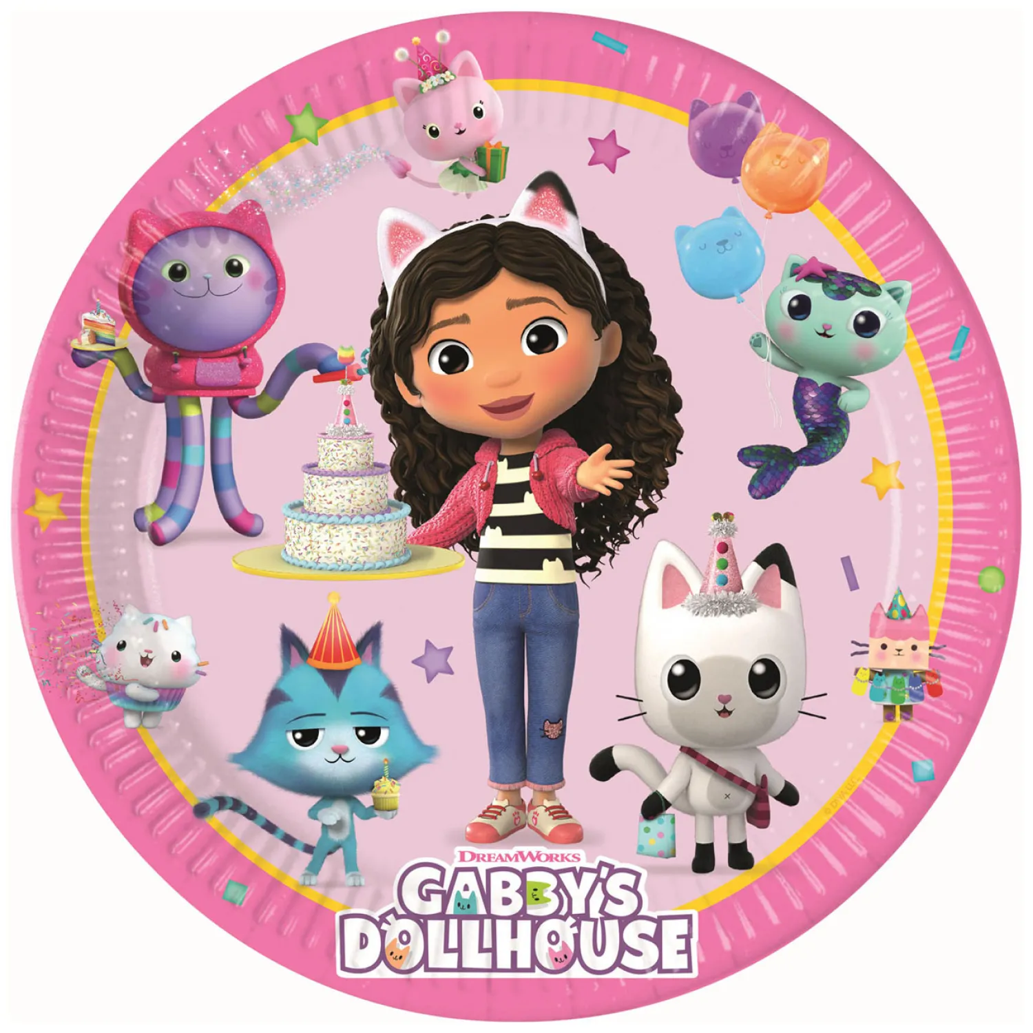 Dit leuke verjaardagssetje bestaat uit 8 papieren feestbordjes van Gabby’s Poppenhuis. De bordjes hebben een doorsnede van 23 centimeter en zijn gemaakt van FSC-gecertificeerd karton. Ook verkrijgbaar: bijpassende bekertjes en servetten.